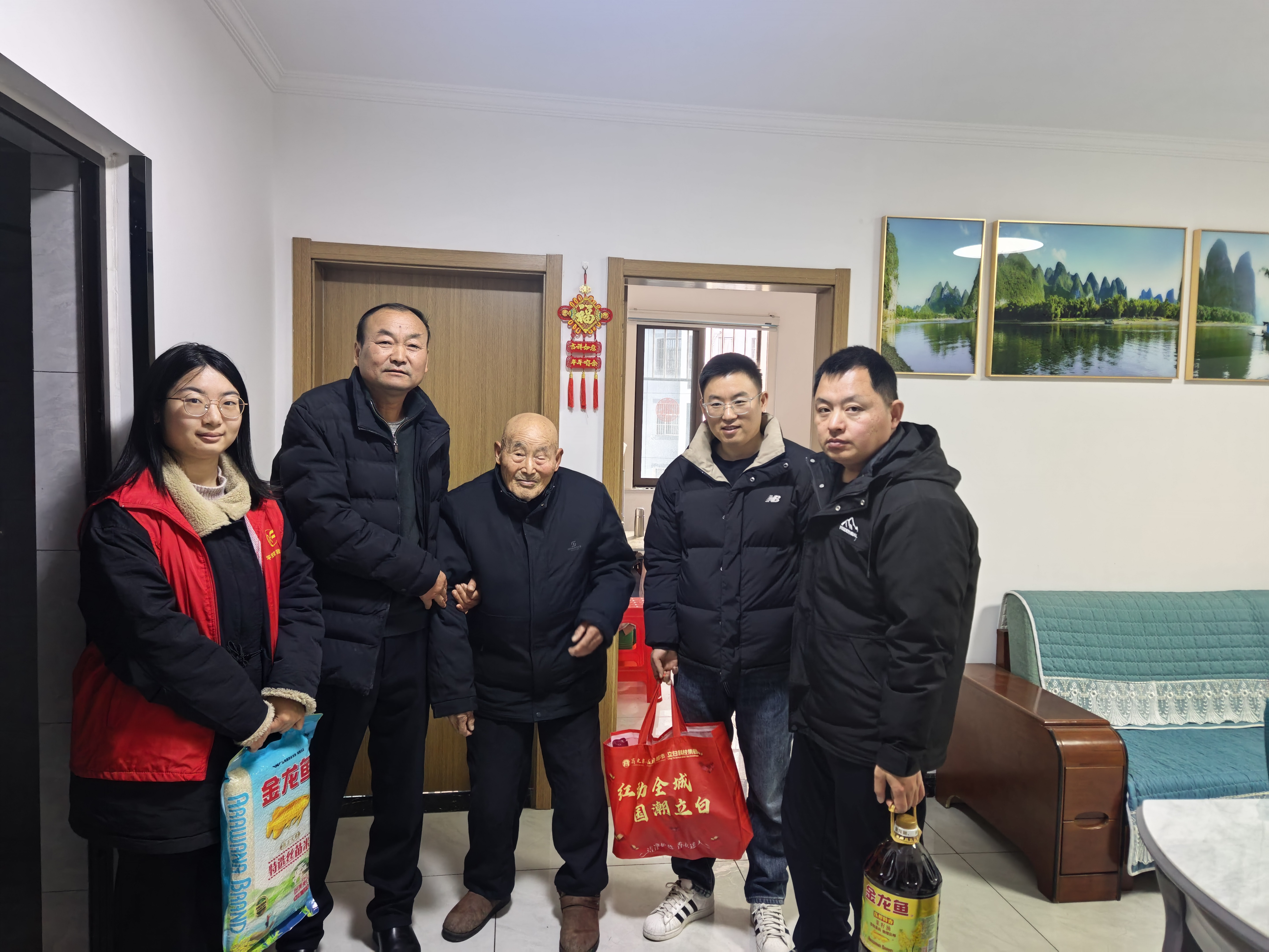 元旦前夕,合肥经开区高刘街道南仓村暖意浓浓。村工作人员与志愿者带着“平安福”围巾、“百福”袜子和专业摄影设备,登门入户为12位90岁以上高龄老人送上冬日关怀,并拍摄新年照,让老人 ...