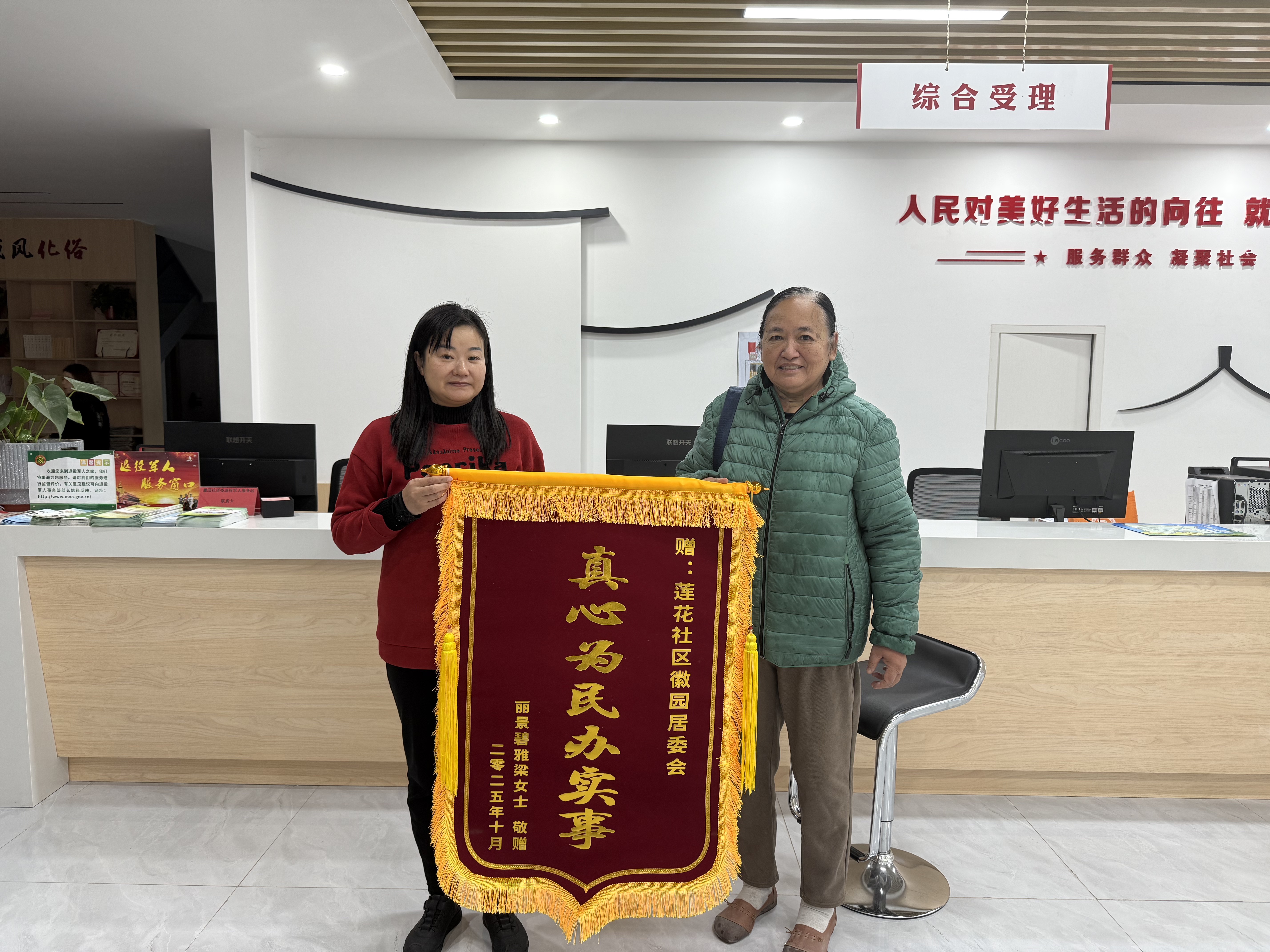 一面锦旗映初心,一份担当护民安。近日,合肥经开区莲花中心徽园社区、丹霞社区接连收到居民与商户送来的致谢锦旗,鲜红的锦旗上“真心为民办实事”“情暖业主 实干担当”等字样,既 ...