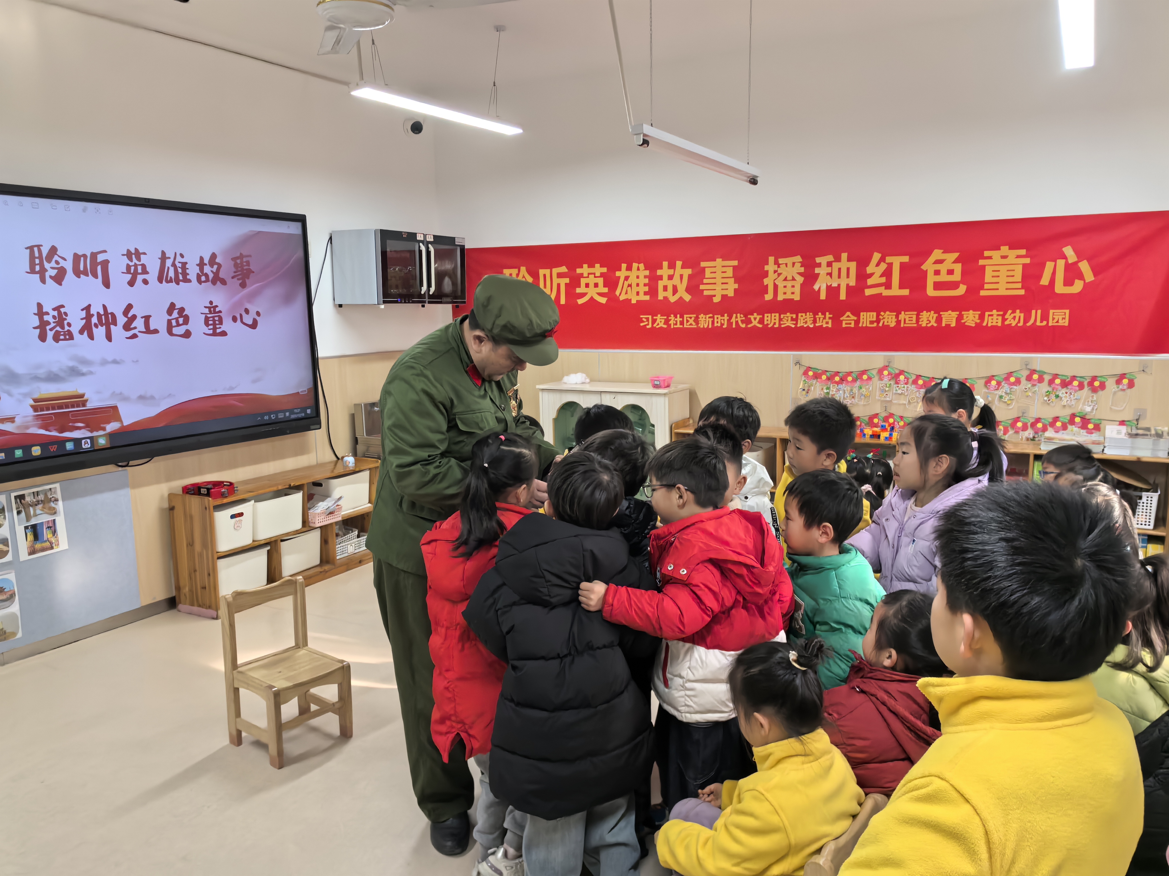为传承红色基因,厚植家国情怀,让爱国主义精神在幼儿心中生根发芽,近日,合肥经开区海恒中心习友社区新时代文明实践站特邀辖区退伍老兵张国友走进海恒教育枣庙幼儿园,为孩子们带来了一 ...