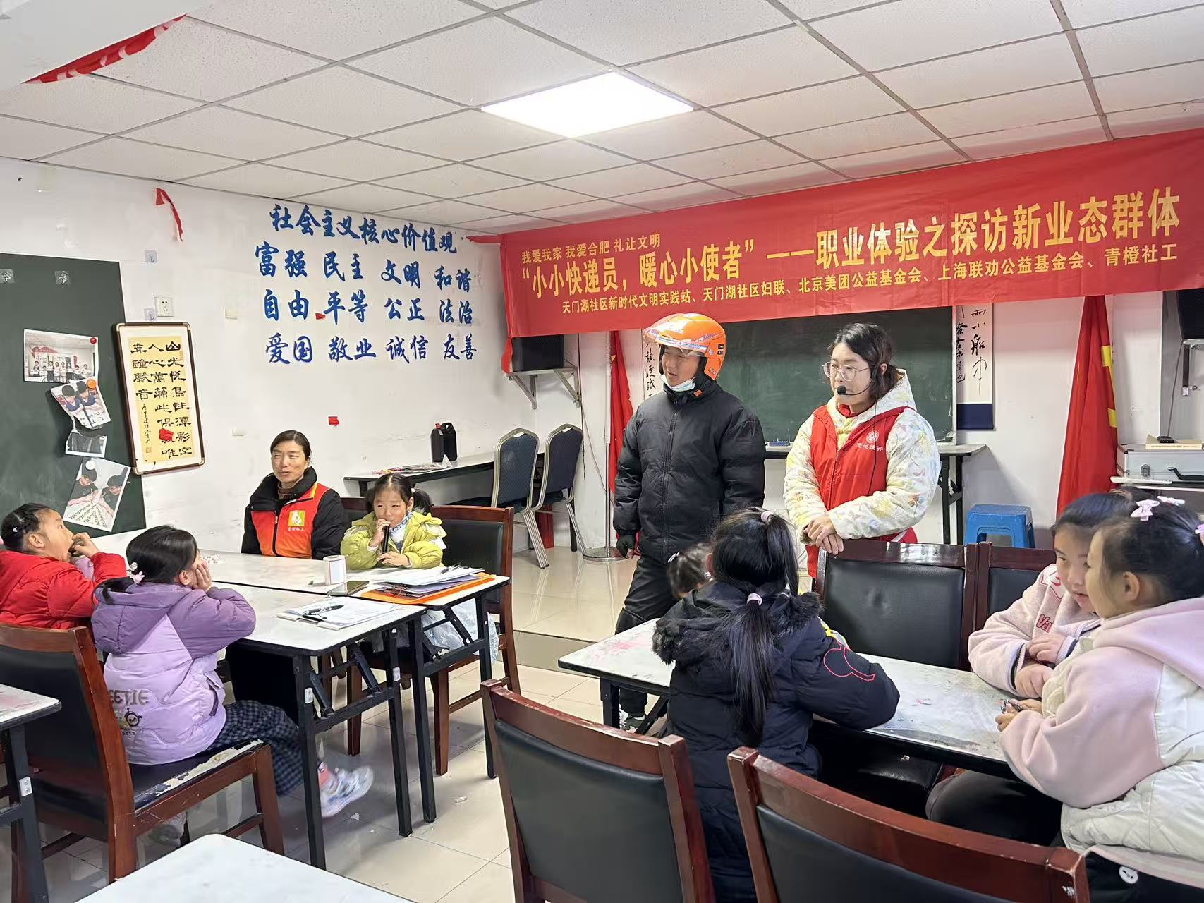 2025-12-15 09:50:57天门湖社区开展“小小快递员 暖心小使者”——职业体验之探访新业态群体活动