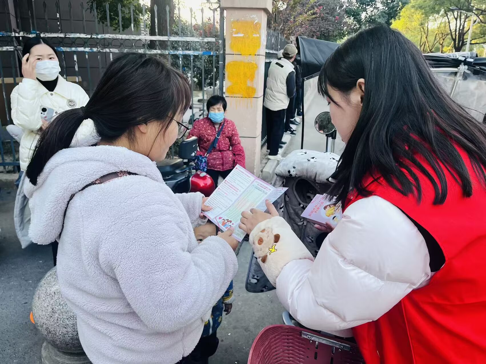 12月9日,合肥经开区锦绣中心方兴社区计生工作人员在方兴南园小区出入口及经开实验学校门口两处人流密集点,同步开展育儿补贴政策宣传活动,将惠民福利及时传递给辖区家长。