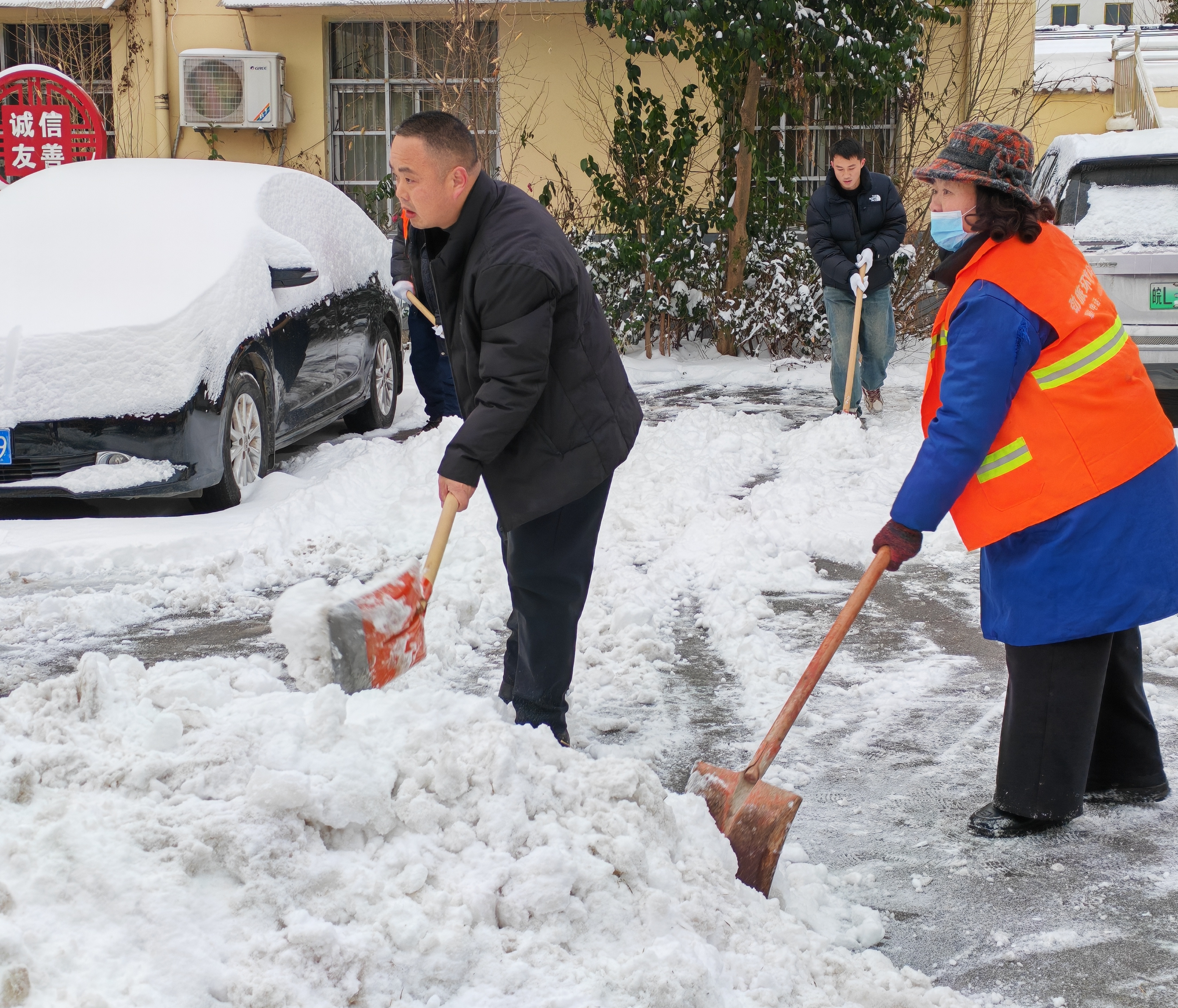 1月19日,萧县气温骤降,同时迎来降雪,萧县锦屏街道第一时间启动应急预案,组织党员干部开展清雪和走访工作。