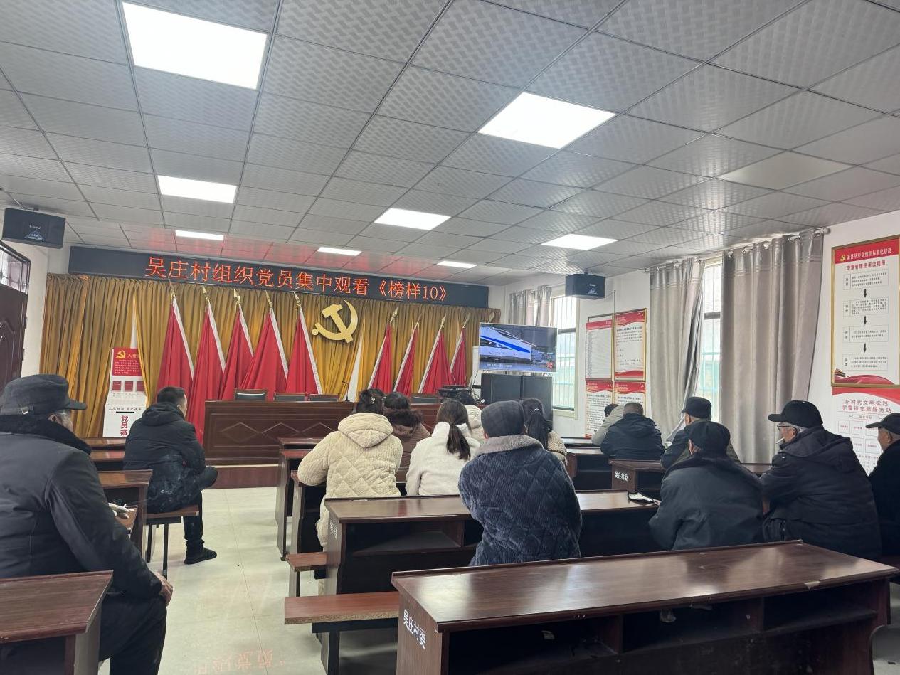 1月21日,萧县锦屏街道吴庄村党总支组织在家党员、入党积极分子,在党群服务中心集中观看《榜样10》专题节目重播,教育引导党员学习榜样、争当先进。