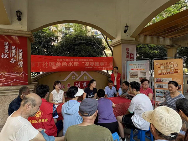 9月16日上午,在芜湖市第三届社会治理公益创投项目的支持下,镜湖区园丁社区金色水岸小区以“聚焦民生诉求,压实责任推进”为主题,在小区中心凉亭召开第四次“凉亭集事”会议。社区工作人...