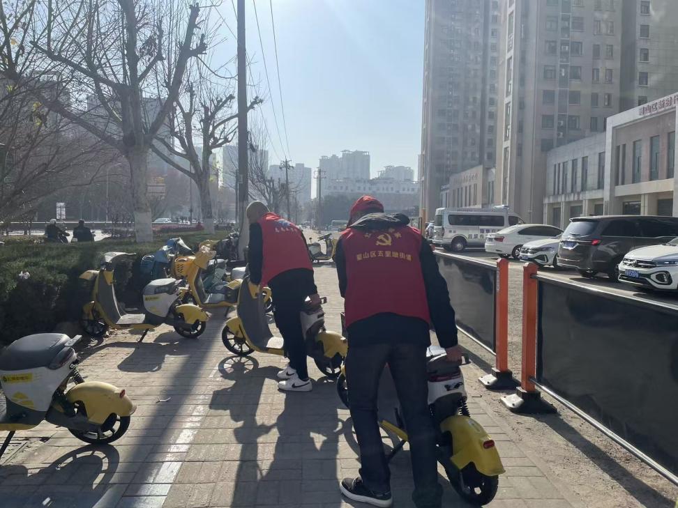 近日,为营造整洁有序的市容环境,近日,合肥市蜀山区五里墩街道清溪路社区组织工作人员、党员志愿者和红色管家,针对高铁站沿线共享单车乱停乱放现象开展了专项集中整治行动。