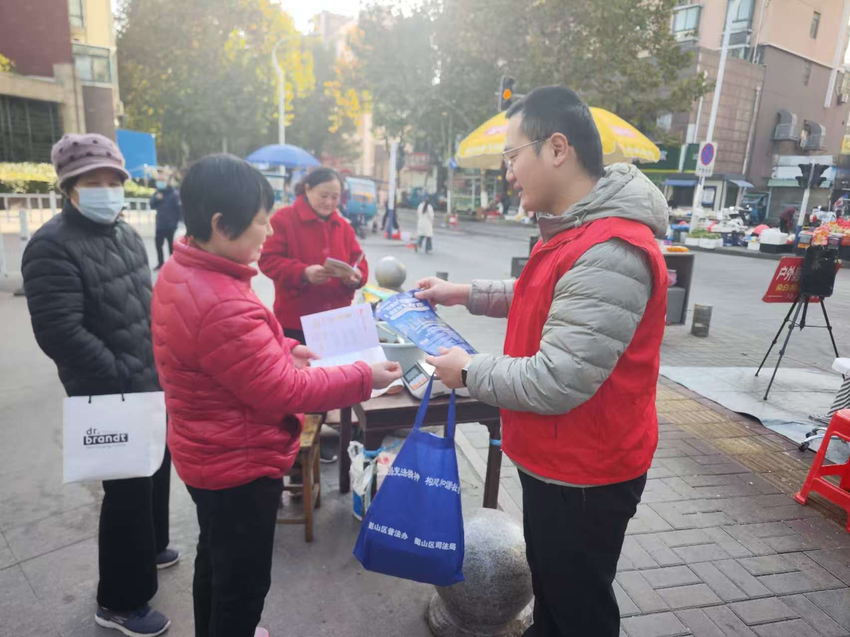 11月22日上午,合肥市蜀山区五里墩街道团安村社区在博微家园小区举办“六情”宣传暨医保参保推广主题活动,将安全防护与民生保障服务送到居民身边。