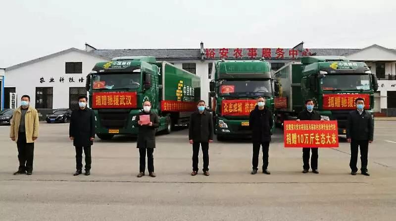 在经历了一个星期的奔走之后,刘永发的爱心终于圆满达成。2月19日上午,三辆满载着10万斤生态大米的中国邮政集团厢式货车,从六安市裕安区江家店镇永裕农村水利专业合作社出发,向湖北省武...