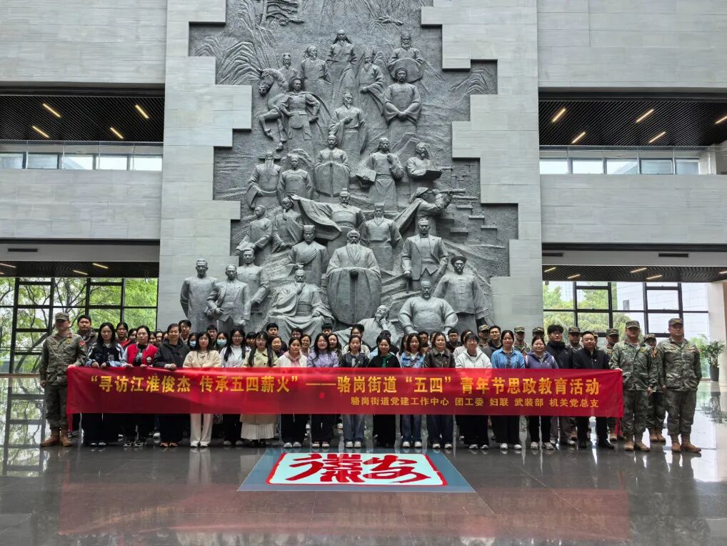 在五四青年节即将到来之际,为激励辖区青年赓续红色血脉、勇担时代使命,骆岗街道组织辖区青年代表前往安徽名人馆与花漾包河劳动教育基地,开展思政教育活动。