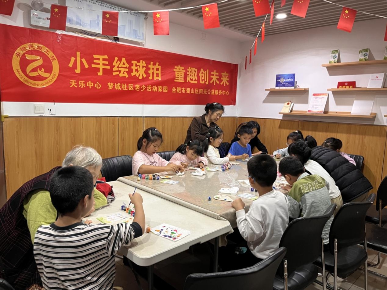 为丰富社区儿童课余生活,激发创造力与动手能力,营造和谐温馨的社区氛围,10月15日,合肥高新区天乐中心梦城社区老少活动家园联合合肥市蜀山区阳光公益服务中心开展“小手绘球拍 童 ...