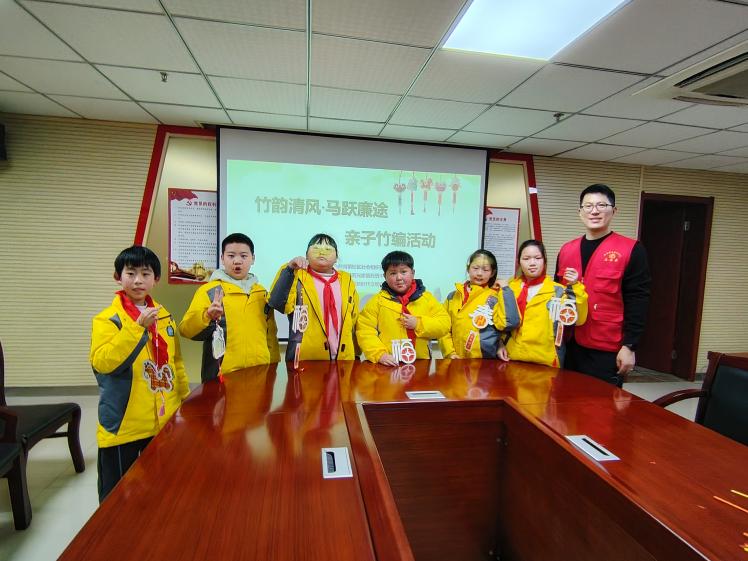 2月4日下午,合肥市蜀山区井岗镇社区社会组织孵化园、兴民社区党委、新时代文明实践站联合开展“竹韵清风·马跃廉途”亲子竹编活动。