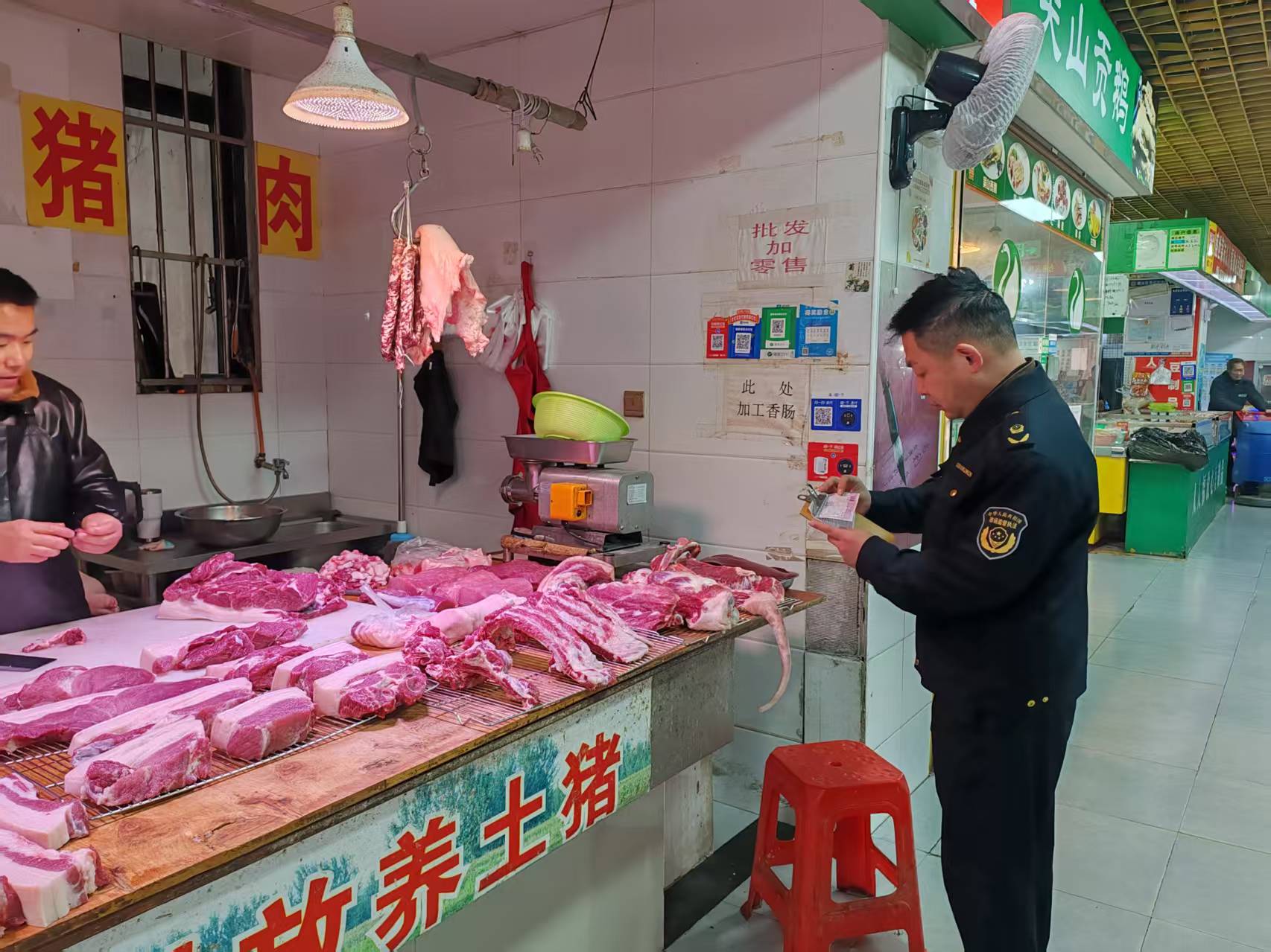 为切实保障冬季肉类市场供应安全,守护人民群众“舌尖上的安全”,近日,合肥市蜀山区南七市场监管所聚焦重点民生商品,组织执法人员对辖区农贸市场肉类销售环节开展了专项监督检查行动。