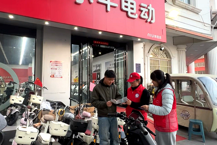 近日,滁州市消防救援局联合银花社区网格员、消防志愿者组成宣传小队,走进城区电动自行车销售门店,将消防安全知识送到群众身边。