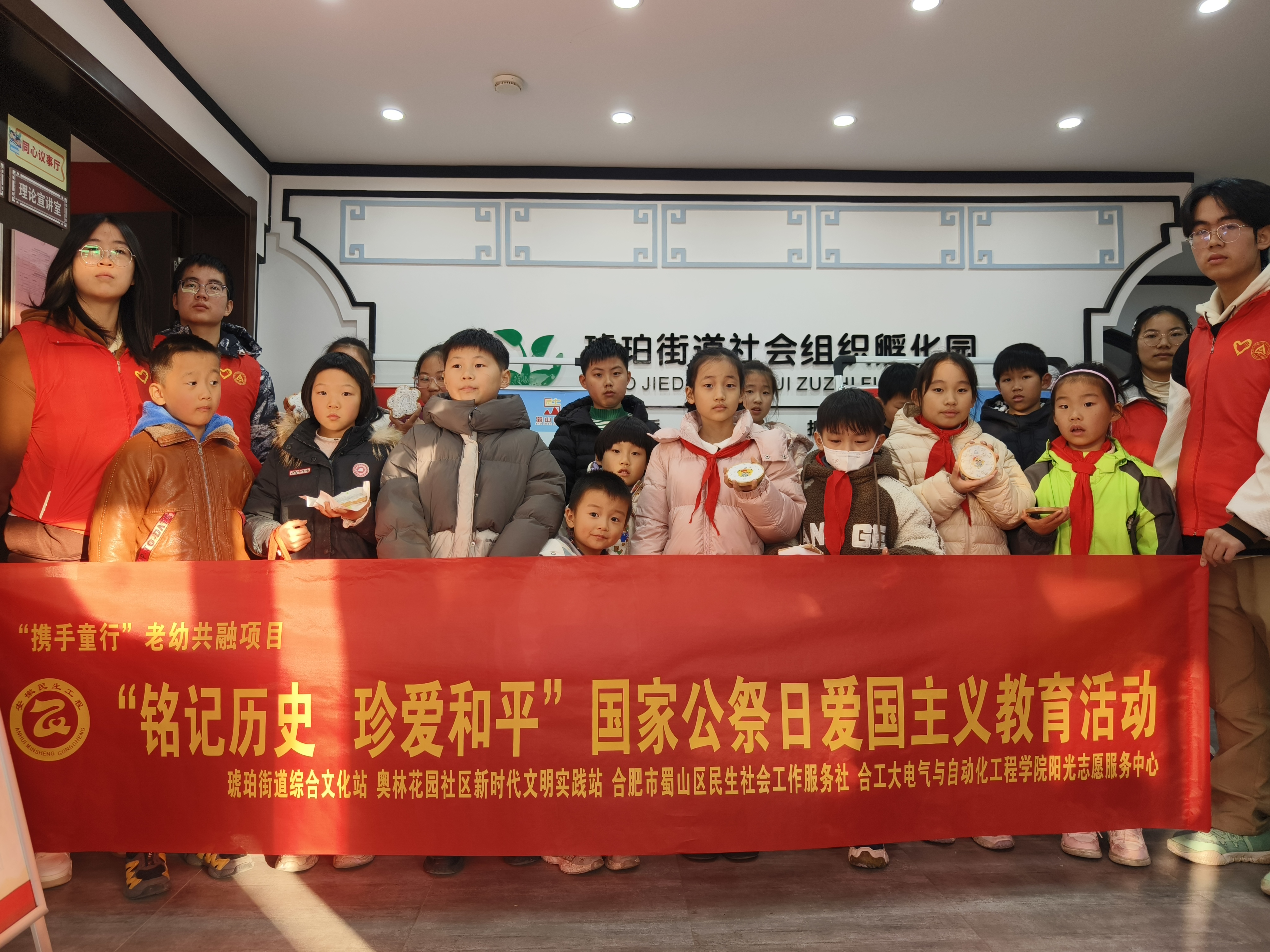 2025年12月13日国家公祭日之际,奥林花园社区依托“携手童行”老幼共融项目,联合合肥工业大学电气与自动化工程学院阳光志愿服务中心、合肥市蜀山区民生社会工作服务社,共同举办爱国主义 ...