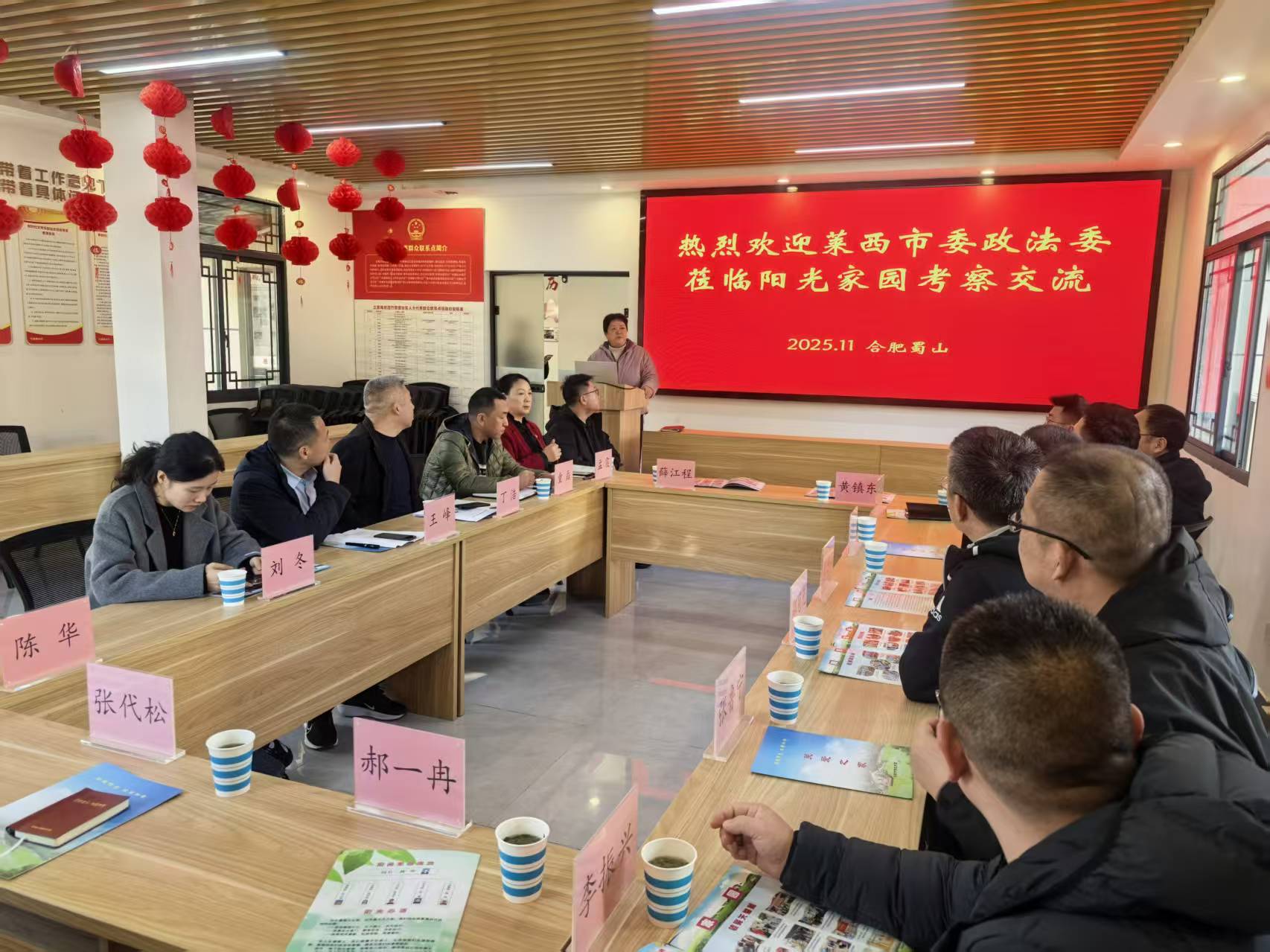 11月20日,山东省莱西市委政法委考察团一行来到合肥市蜀山区三里庵街道竹荫里社区,专题调研“阳光家园”活动室建设运营情况,开展跨区域学习交流。蜀山区委政法委副书记王峰,三里庵街道 ...