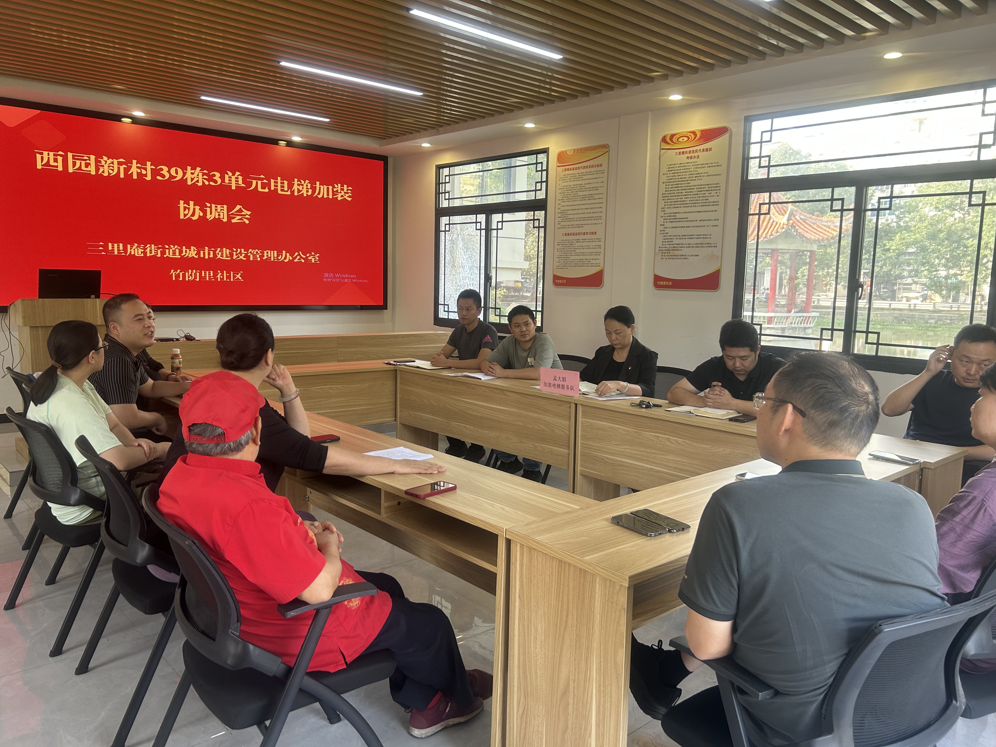10月10日,合肥市蜀山区三里庵街道竹荫里社区党委联合三里庵街道城市建设管理办公室开展西园新村39栋3单元加装电梯协调会。