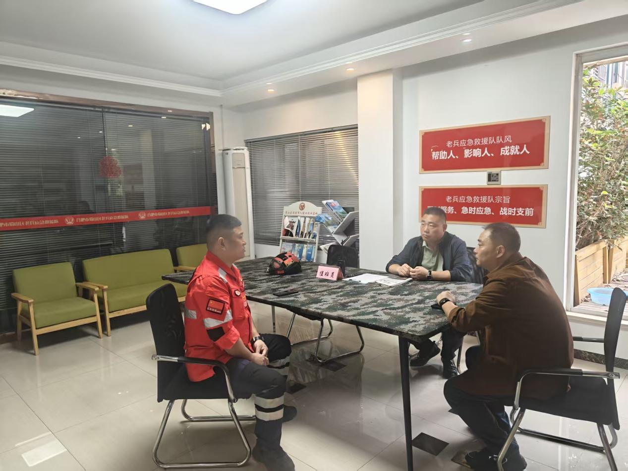近日,五里墩街道家家景园社区工作人员走进辖区老兵应急救援队——战鹰应急队的办公地点,实地了解队伍运作情况,共同探讨社区应急防护工作推进方向。