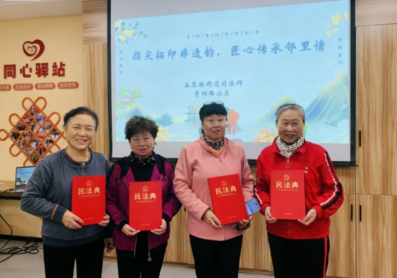 10月24日,合肥市蜀山区五里墩街道司法所携手青阳路社区,以“指尖拓印非遗韵,匠心传承邻里情”为主题,将民法典宣传与非遗拓印技艺深度融合,让法治精神在传统技艺的浸润中深入人心。