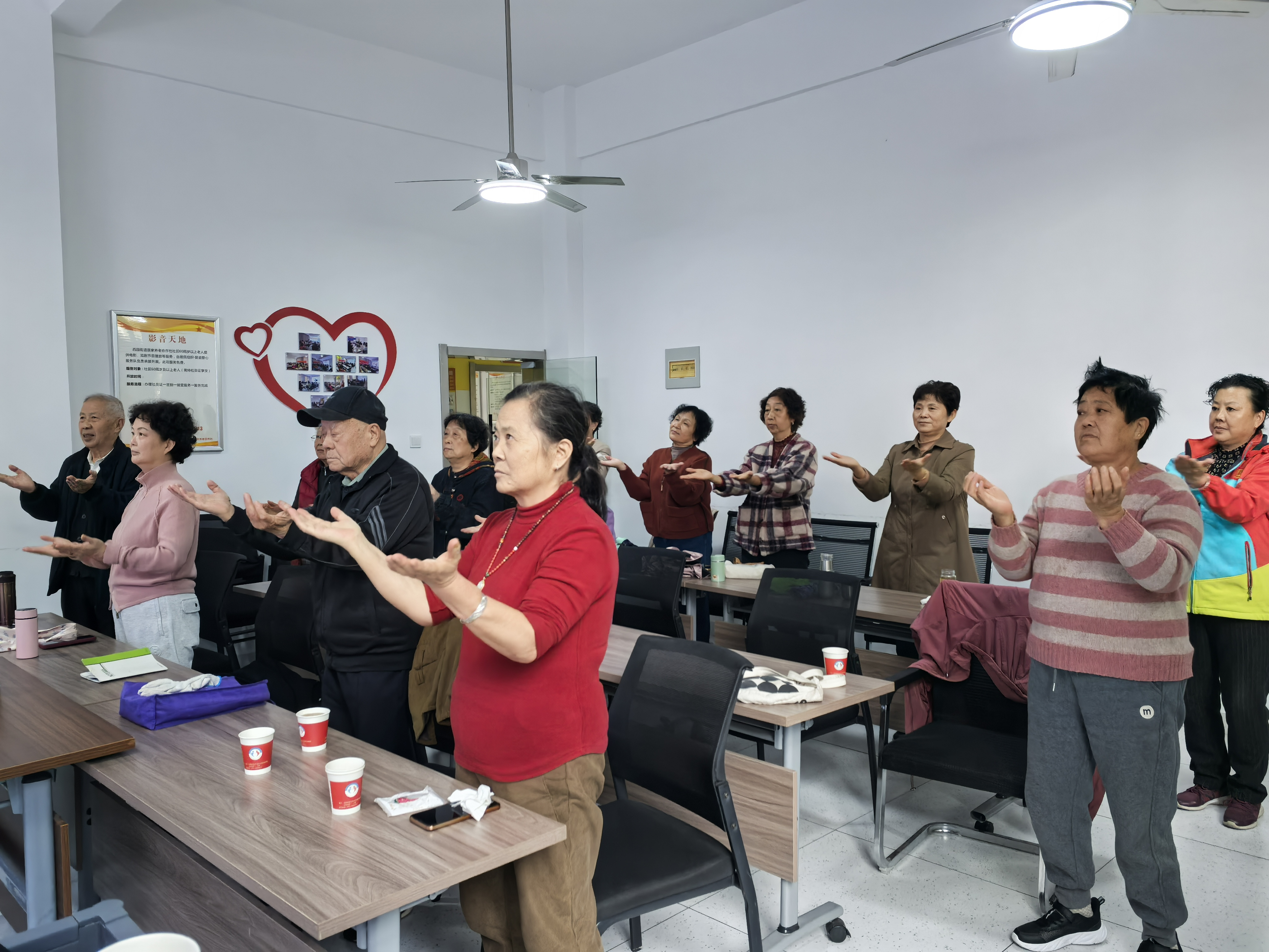 10月30日,在合肥市蜀山区西园街道美虹社区二楼活动室内,伴随着舒缓的音乐,20余位居民跟着教练的动作舒展身体,一场热闹又温馨的养生操活动正在这里开展,让社区的上午充满了活力。