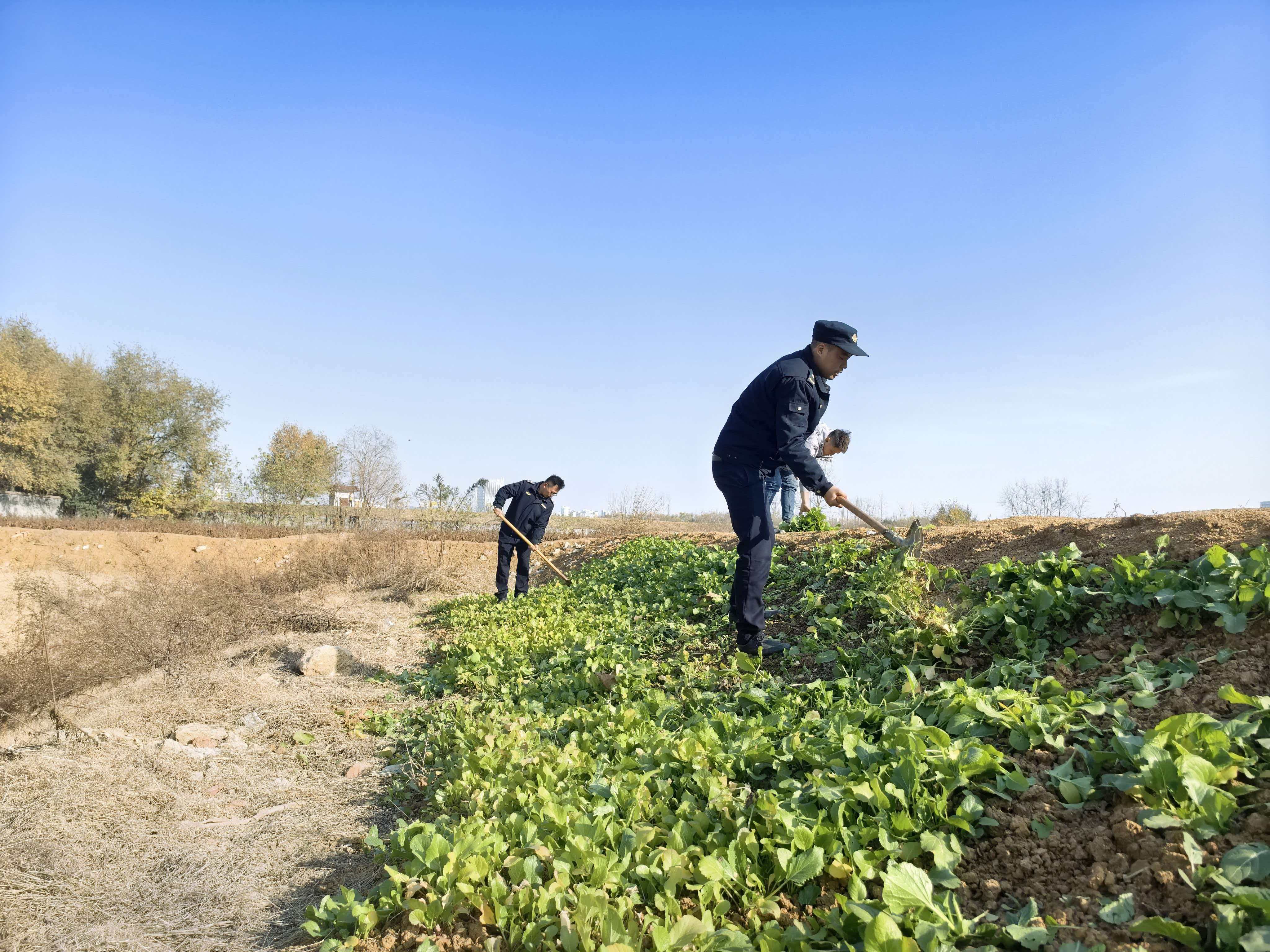 12月9日下午,合肥蜀山经开区应急和城市管理处的城管队员,出现在明理路小庙中学旁的公共用地区域——这里的一片菜地,正被违规垦种。