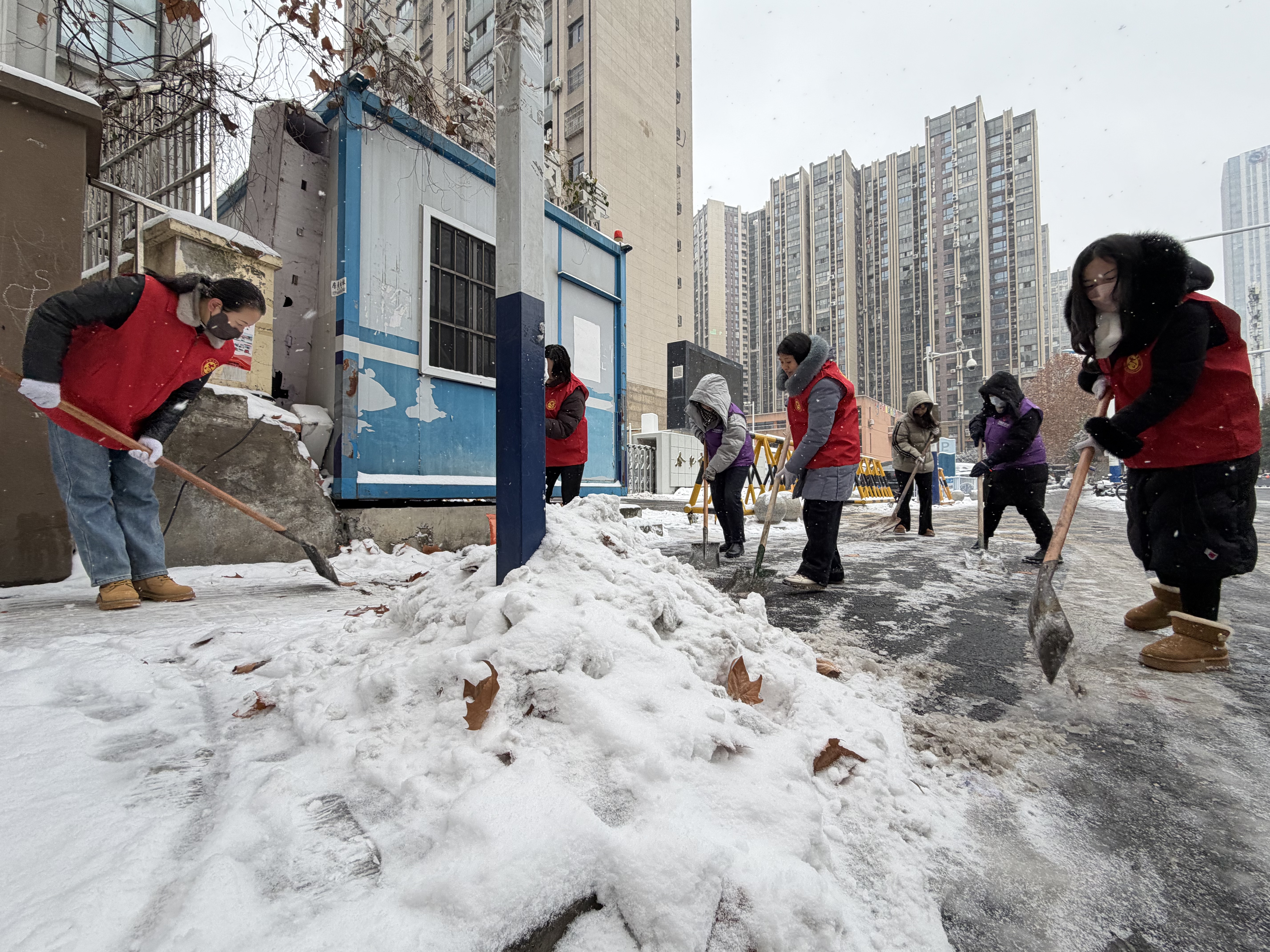 合肥市蜀山区合作化南路社区志愿者齐心协力铲雪保畅通