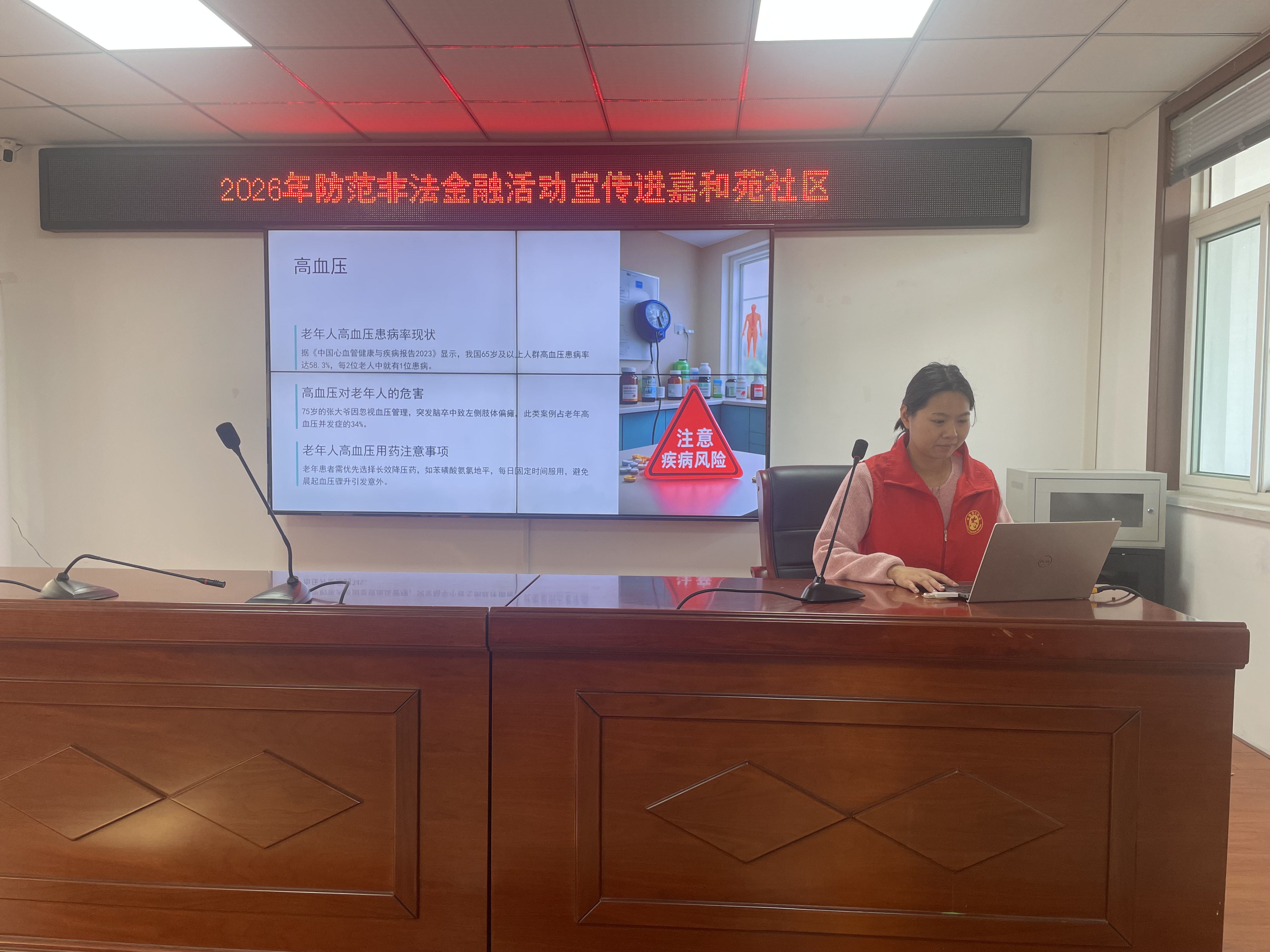 为进一步增强群众金融风险防范意识,1月16日下午,合肥市蜀山区荷叶地街道嘉和苑社区在党群服务中心二楼开展老年慢病健康讲座暨防范非法金融宣传活动,帮助老年居民守护好自己的“钱袋子”。