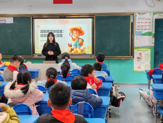 1月13日下午,合肥市蜀山区翠庭园小学一年级汤贤博姐姐为班级里的孩子们带来了一场主题为“超能视觉体验官:动物眼睛大冒险”的精彩科普课堂。