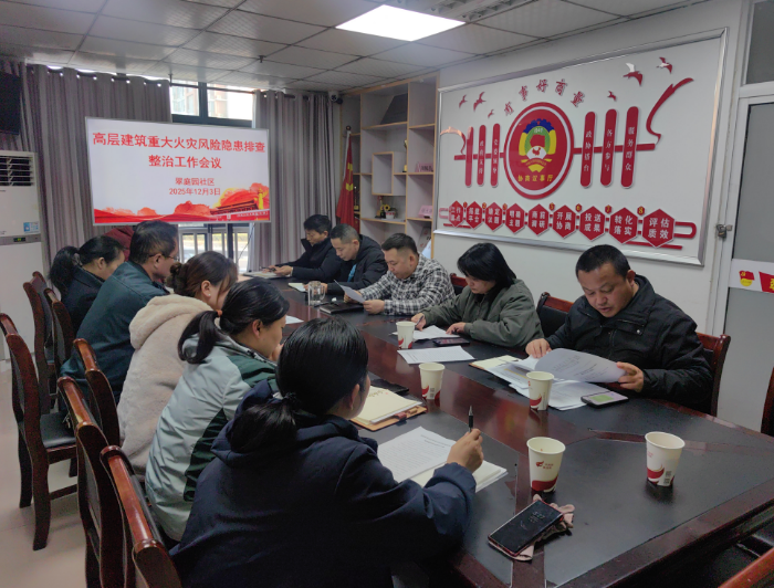 2025年12月3日下午,蜀山区笔架山街道翠庭园社区组织召开高层建筑重大火灾风险隐患排查整治工作专题会议,传达学习上级有关精神,分析当前社区安全形势,并就相关重点工作进行再部署...