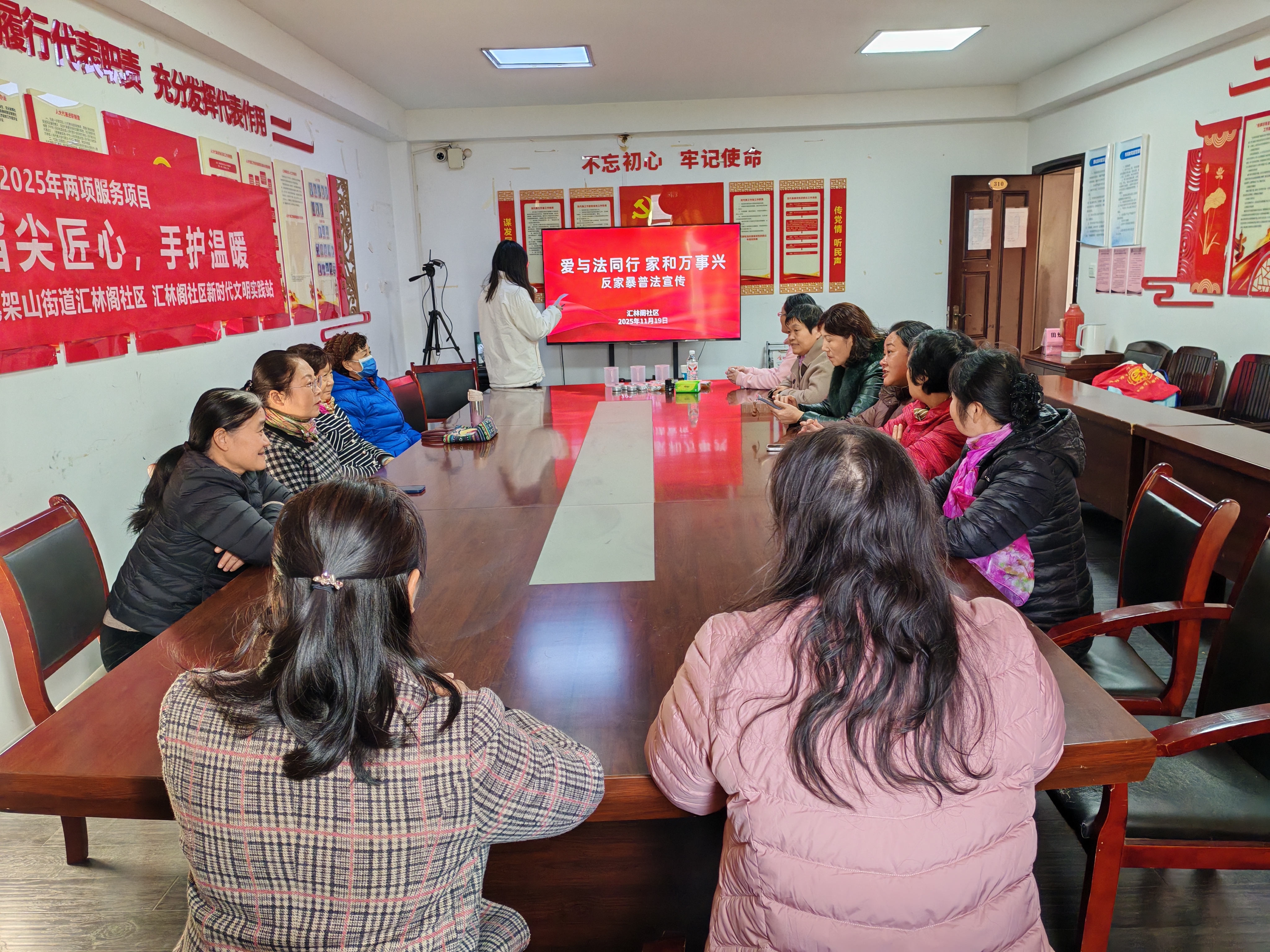 为深化居民对反家暴法律知识的理解,增强自我保护与维权能力,近日,合肥市蜀山区笔架山街道汇林阁社区组织开展“爱与法同行家和万事兴”反家暴普法宣传活动。