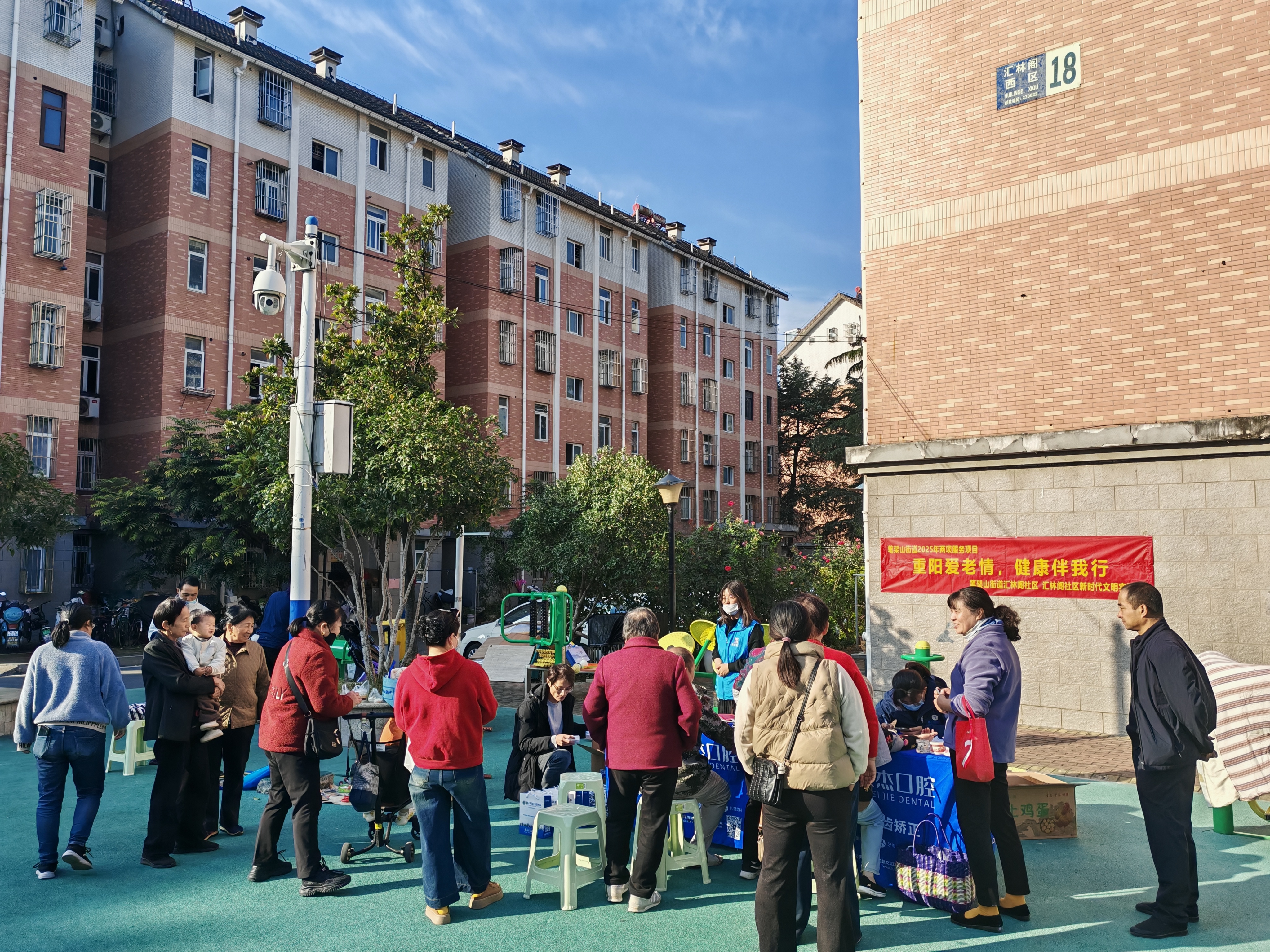 10月29日上午,为弘扬中华民族尊老敬老的传统美德,合肥市蜀山区笔架山街道汇林阁社区党委、汇林阁社区新时代文明实践站联合辖区医疗机构在汇林阁西区开展主题为“重阳爱老情,健康伴我行 ...