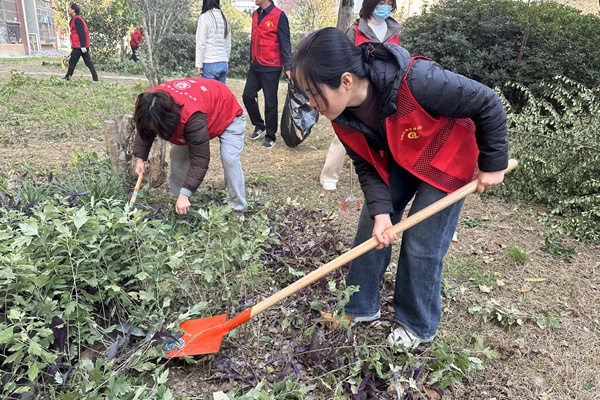 近日,在合肥经开区临湖祥园小区,一群身穿红马甲的志愿者活跃在小区各个角落,修剪树枝、清理杂草、铲除灰绿种菜,引来不少居民们驻足称赞。