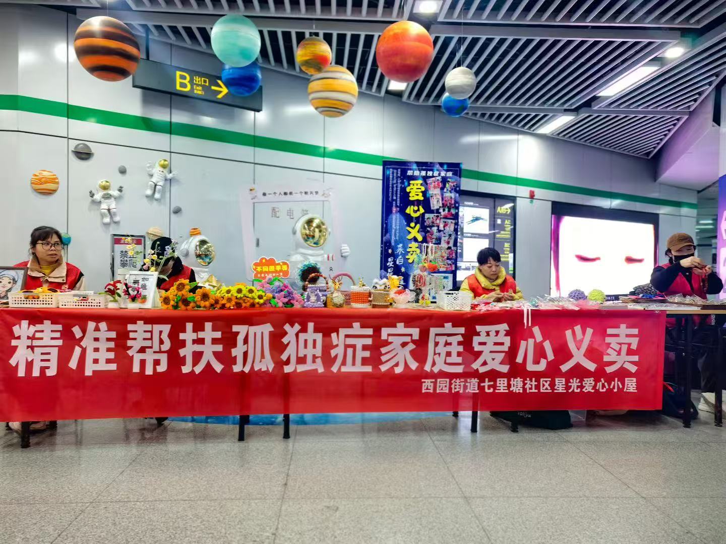 近日,合肥市蜀山区西园街道七里塘社区联合辖区社会组织七里塘爱心小屋,在地铁口启动“星梦市集”精准帮扶爱心义卖活动——摊位被宇航员摆件、行星挂饰包裹成“宇宙小站”,孤独症群体手 ...