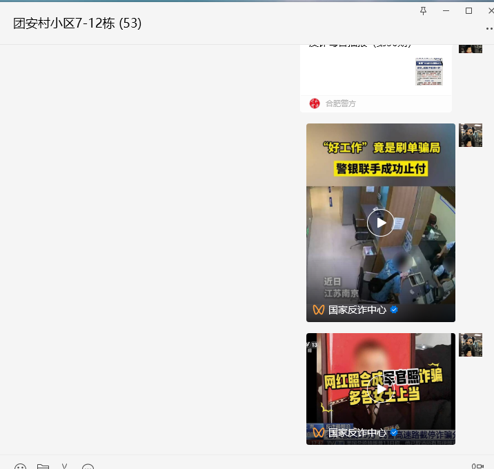 为切实提升辖区居民反诈防诈意识,守护群众财产安全,合肥市五里墩街道青阳路社区创新宣传模式,建立“每周反诈视频推送”,定期将精选反诈宣传视频转发至各小区业主群,让反诈知识精准触 ...