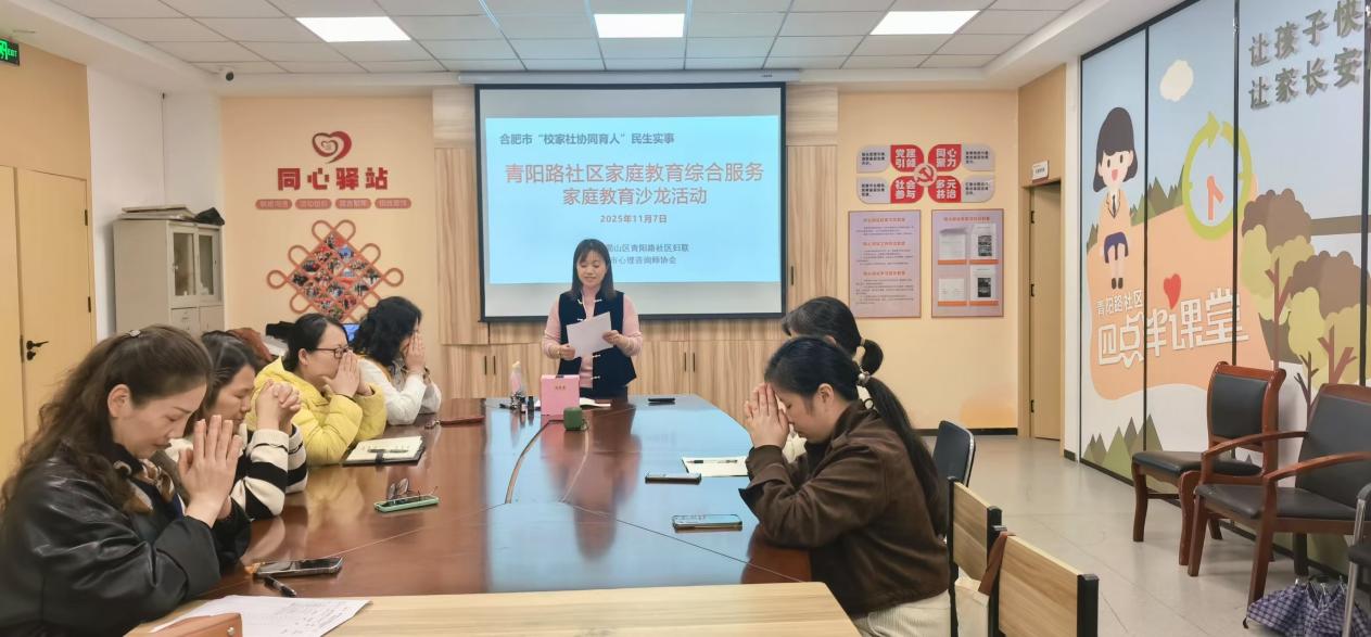 为扎实推动“校家社协同育人”民生实事,赋能家庭教育,11月11日下午,合肥市蜀山区五里墩街道青阳路社区成功举办了一场聚焦青春期亲子关系的家庭教育心理团辅沙龙。