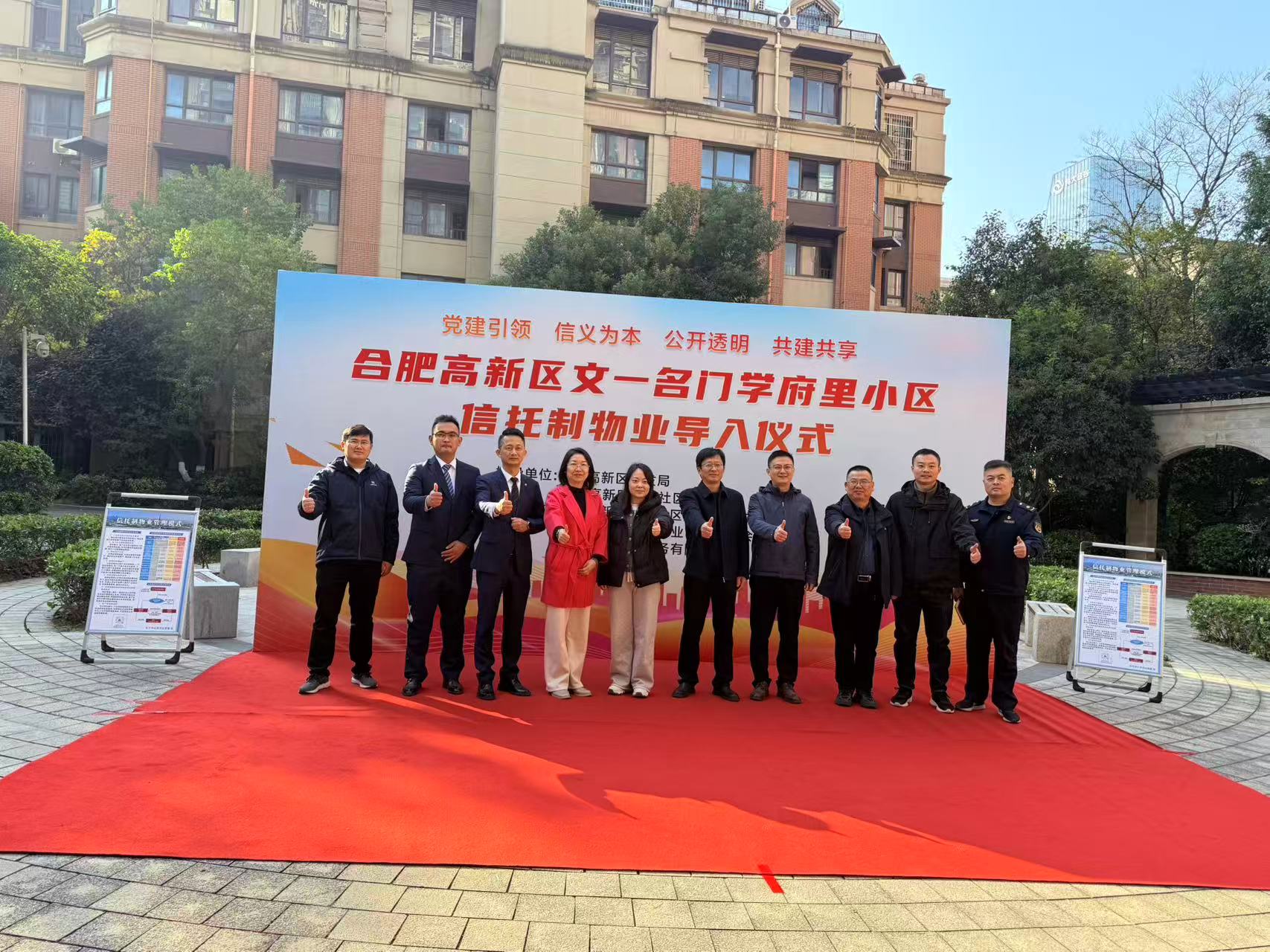 11月21日上午,合肥高新区文一名门学府里小区信托制物业导入仪式在双河社区隆重举行。区建发局、长宁社区服务中心、长宁派出所、双河社区负责人,文一片区党支部书记、文一物管委成员、物 ...