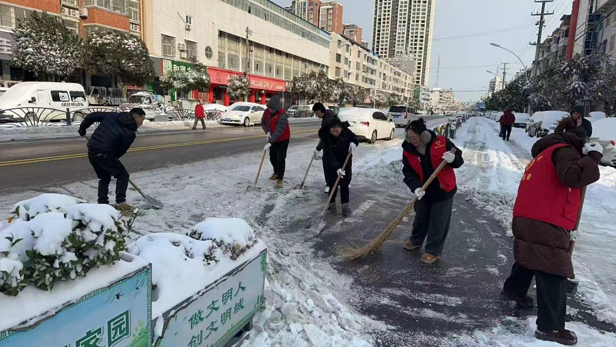 城关镇镜湖社区党旗飘扬,扫雪除冰暖人心
