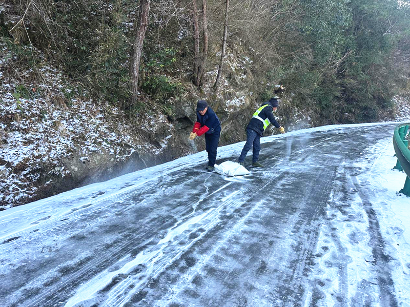 寒潮突袭,山区气温骤降,岳西县来榜镇马元村内道路因低温出现积雪结冰,陡坡急弯处湿滑难行,给村民出行带来极大安全隐患。