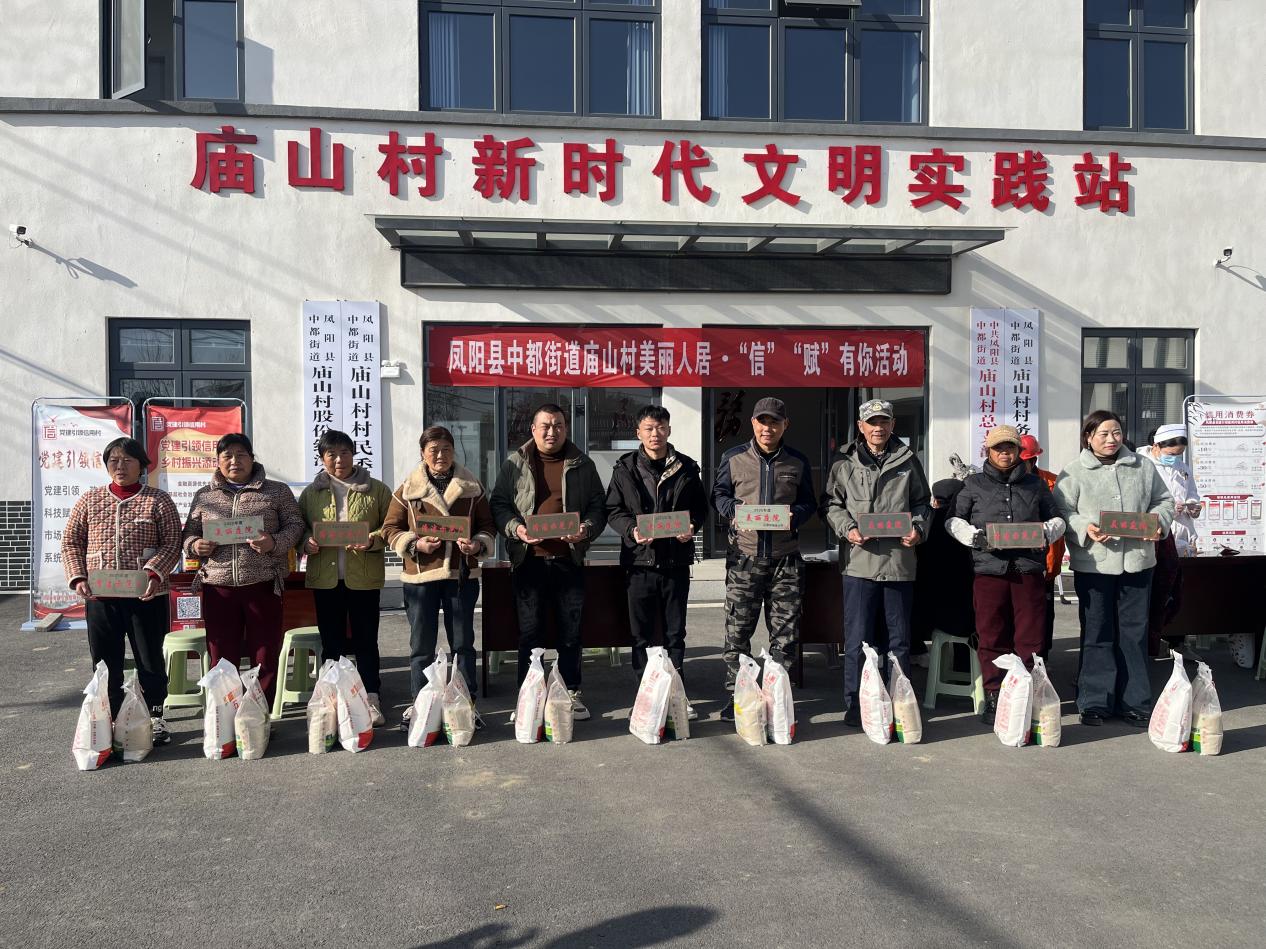 为深入推进党建引领信用村建设,充分发挥先进典型的示范带动作用,近日,凤阳县中都街道庙山村在村文化广场隆重举行“美好庭院”“清洁示范户”颁奖仪式。经过前期入户走访摸排、村工作人 ...