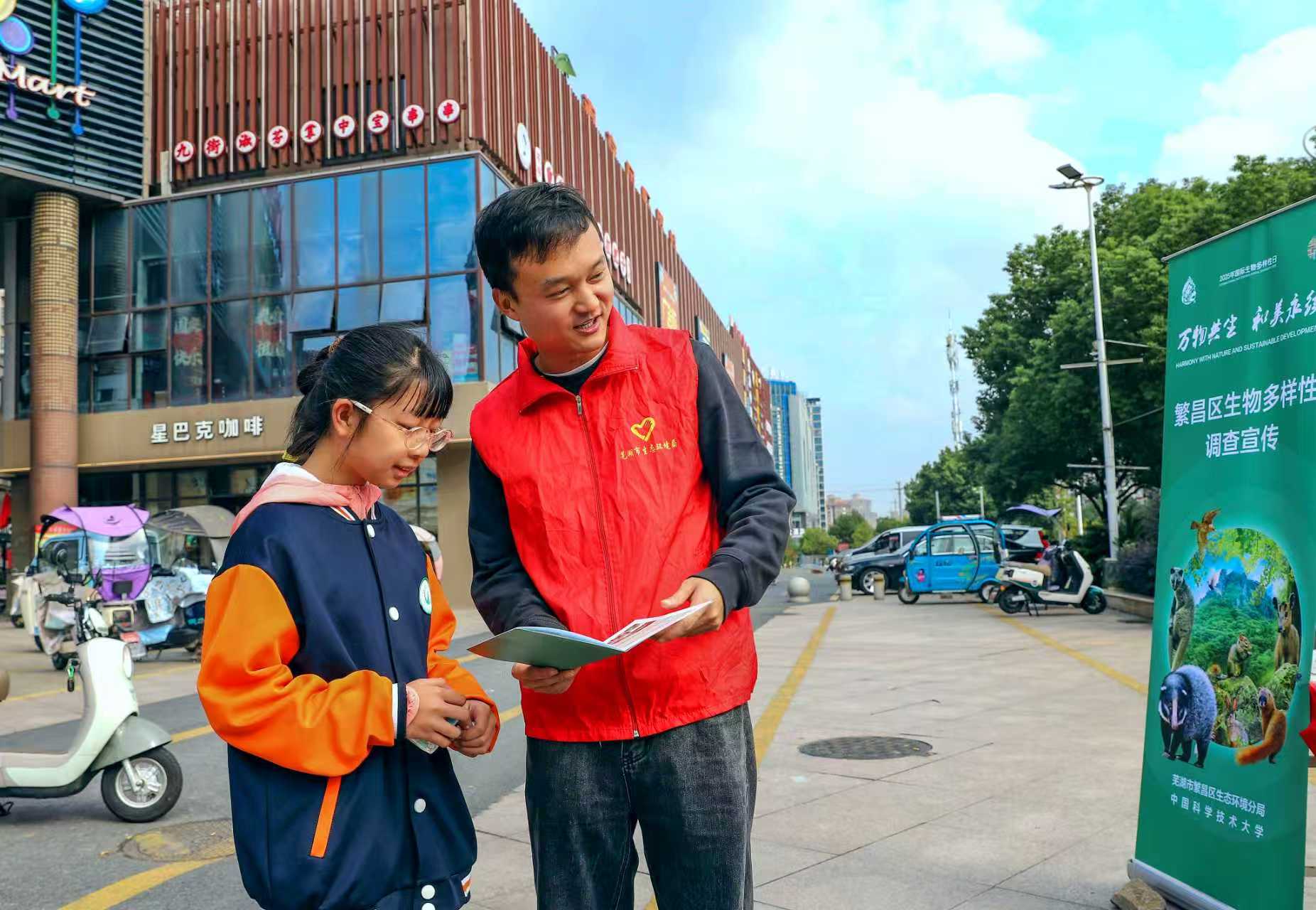 为进一步提高广大市民对生物多样性的认识,10月25日上午,芜湖市繁昌区生态环境分局联合中国科学技术大学,在繁昌区大润发广场开展“万物共生,和美永续”——繁昌区生物多样性调查宣传活动。