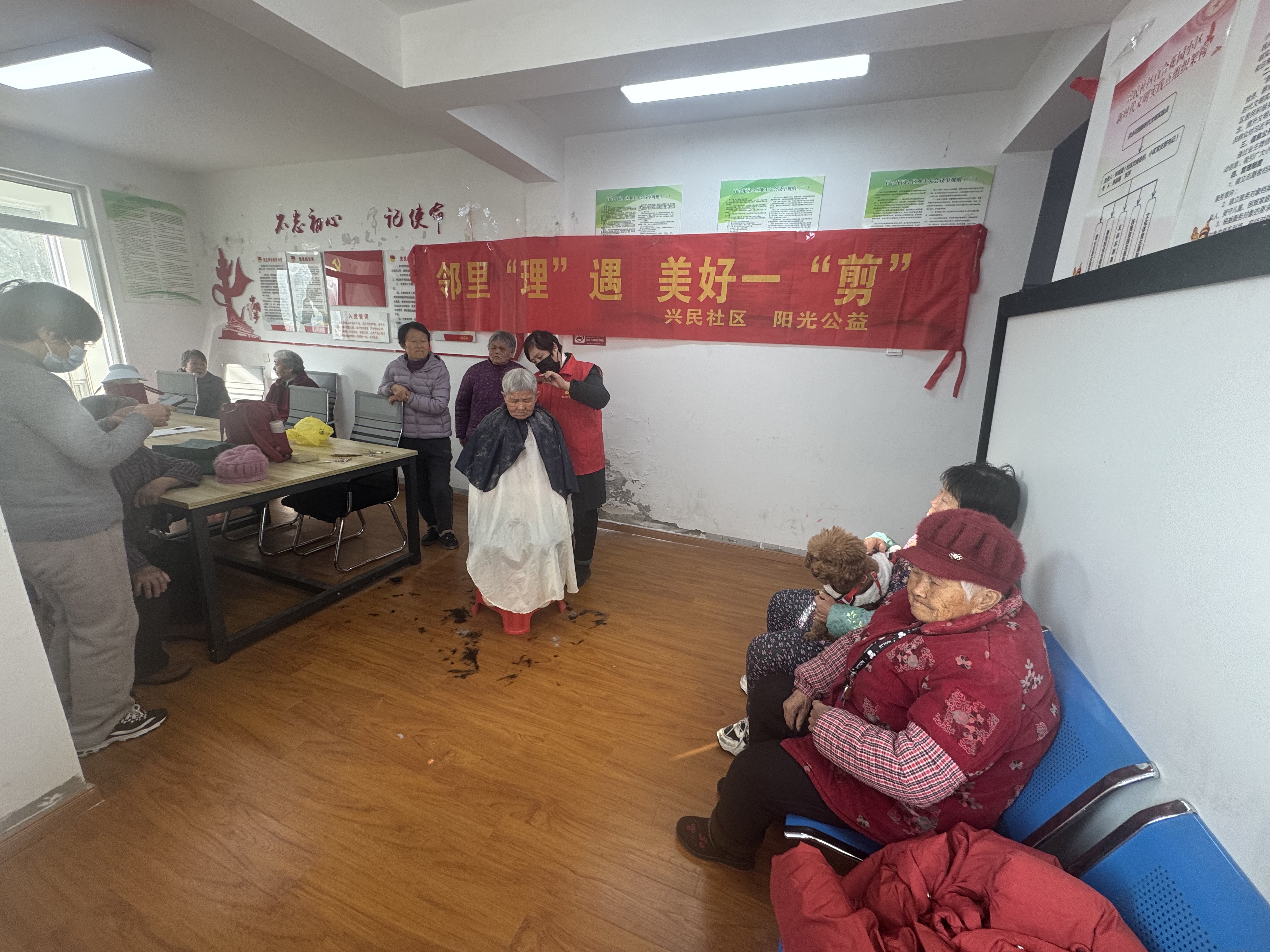 为弘扬尊老、敬老、爱老的传统美德,1月15日,合肥市蜀山区井岗镇兴民社区新时代文明实践站联合百合花园小区党支部、阳光公益开展邻里“理”遇,美好一“剪”志愿服务活动。