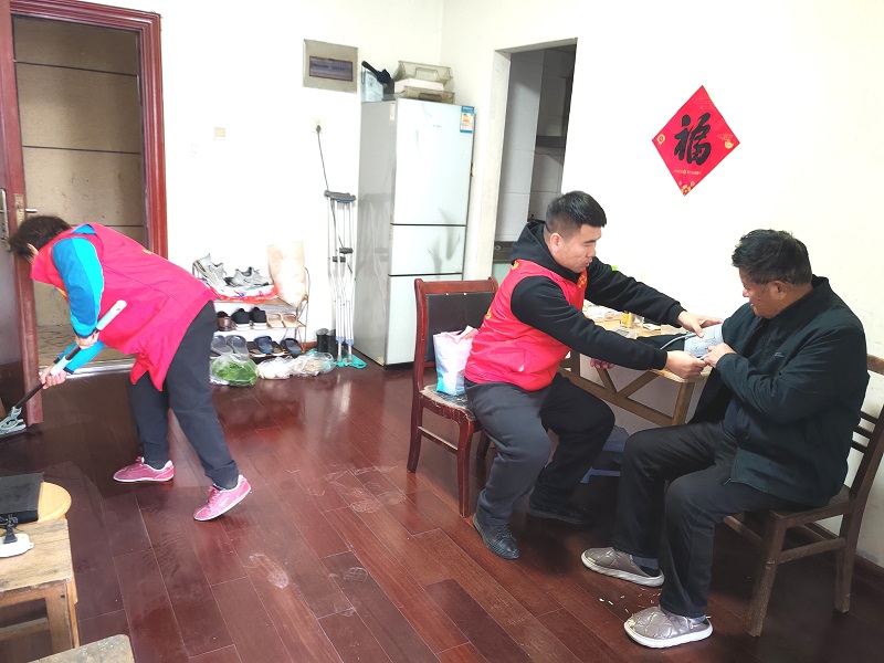“孟老师,我们来帮您擦窗户、收拾屋子啦!”一大早,安徽省铜陵市义安区五松镇荷花塘社区的志愿者就来到退休教师孟凤英的家中帮她打扫卫生,扫帚划过地面的沙沙声与谈笑声相互交织在一起。