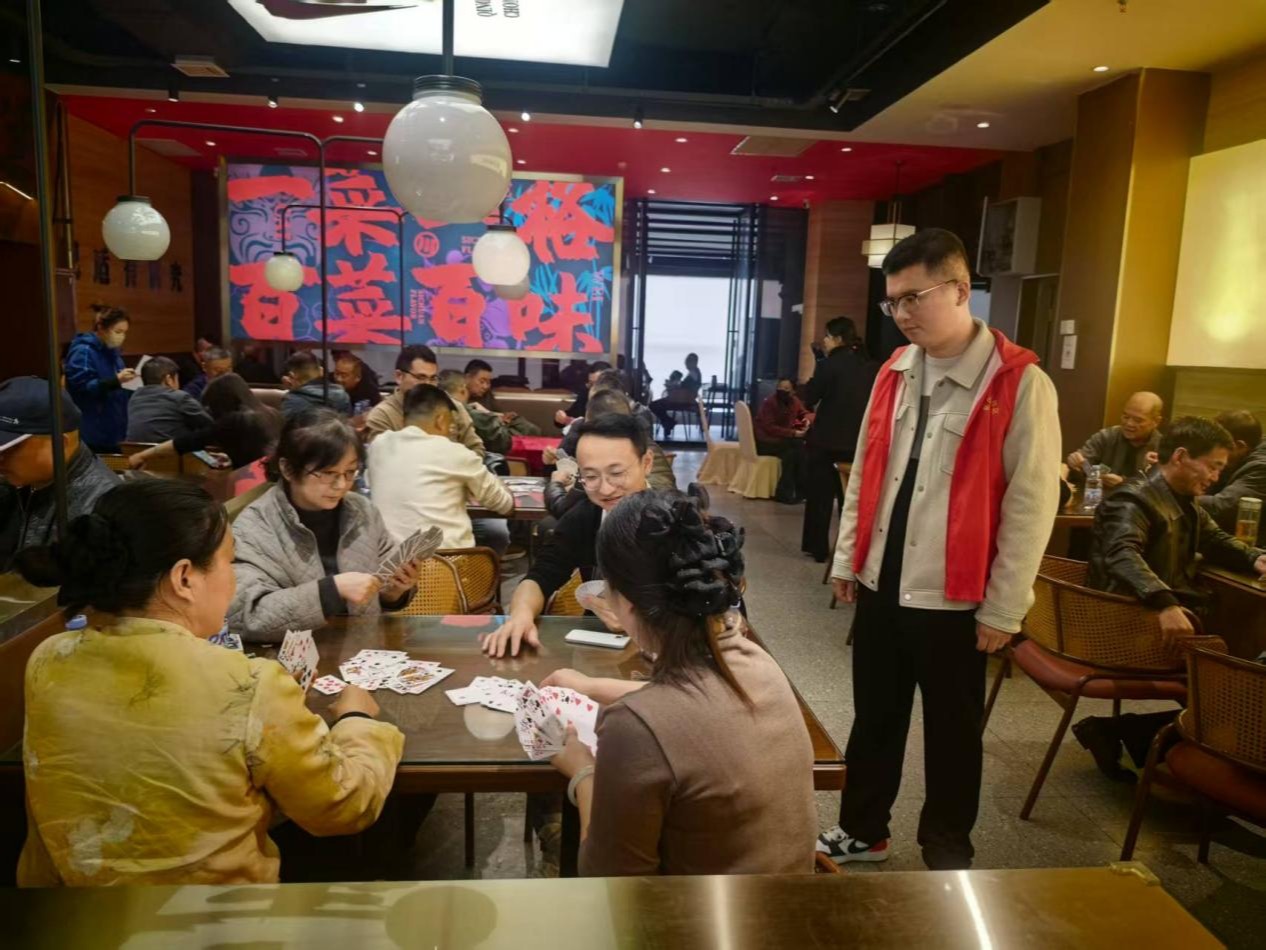 11月9日,由六安市霍邱县新店镇新时代文明实践站、水门塘社区、书香社区携手碧桂园物业服务、新城之星诚物业联合主办的掼蛋比赛热闹开赛,吸引了辖区百余位居民组队参赛,以牌为媒搭建起邻...