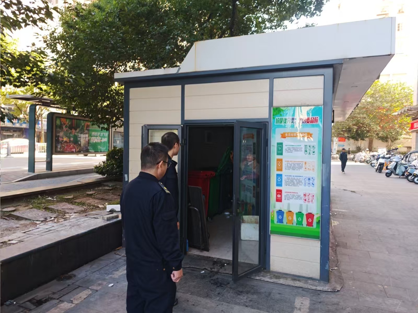 为进一步推进生活垃圾分类工作,巩固社区环境卫生成果,近日,合肥市蜀山区西园街道综合执法队对光明社区辖区内的垃圾分类站房进行了专项巡查,并针对发现问题现场督促立即整改。