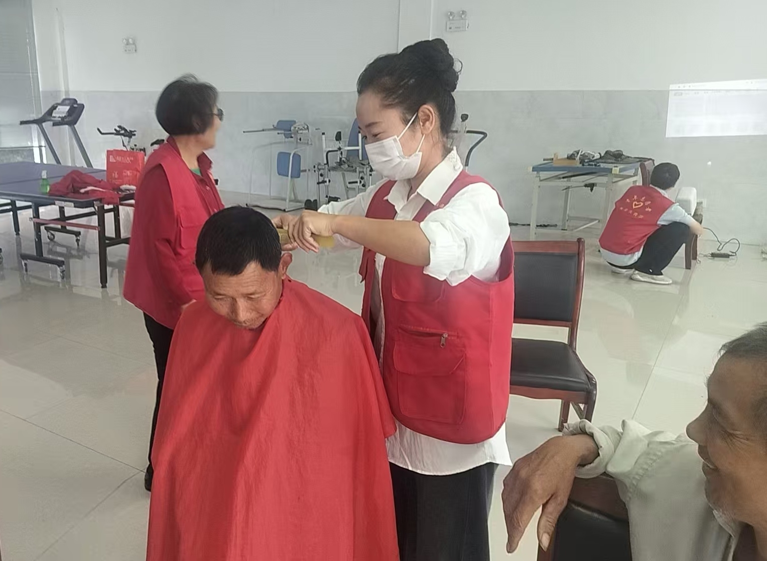 2025-09-12 15:46:00银龄美发 义剪润心——六安市霍邱县新店镇水门塘社区开展老年人义剪志愿服务活动