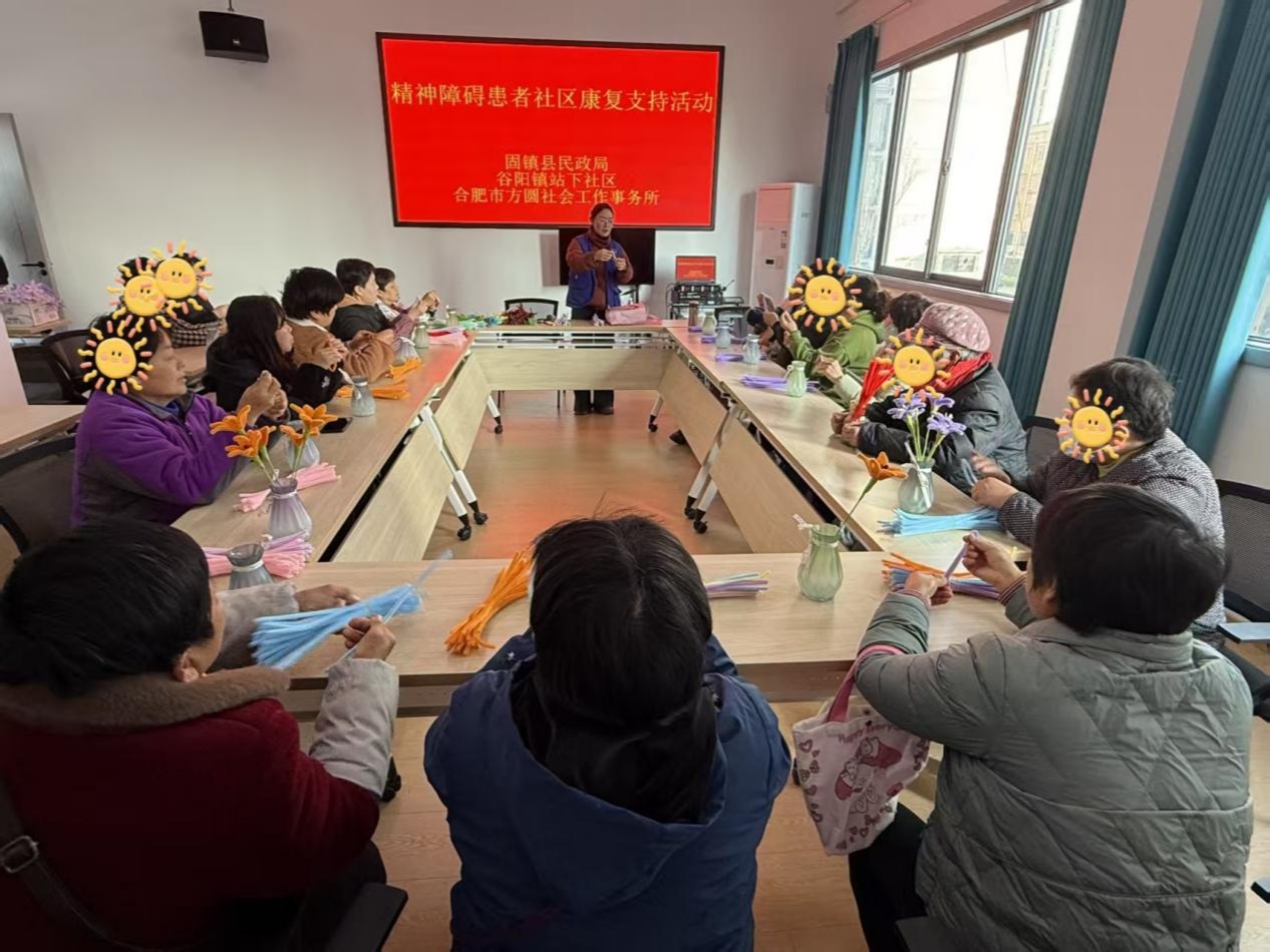 近日,蚌埠市固镇县民政局联合谷阳镇站下社区、合肥市方圆社会工作事务所,在谷阳镇站下社区开展精神障碍患者社区康复支持活动,通过专业指导与手工创作相结合的形式,为精神障碍患者及家 ...