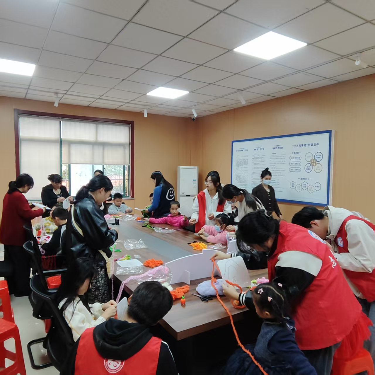 11月7日下午,合肥市蜀山区井岗镇半岛新村社区党群服务中心热闹非凡,社区党委联合妇联、阳光公益在此开展第六期“智惠星”公益课堂。本次活动以“巧手贴耳罩童心赴暖冬”为主题,吸引了20...