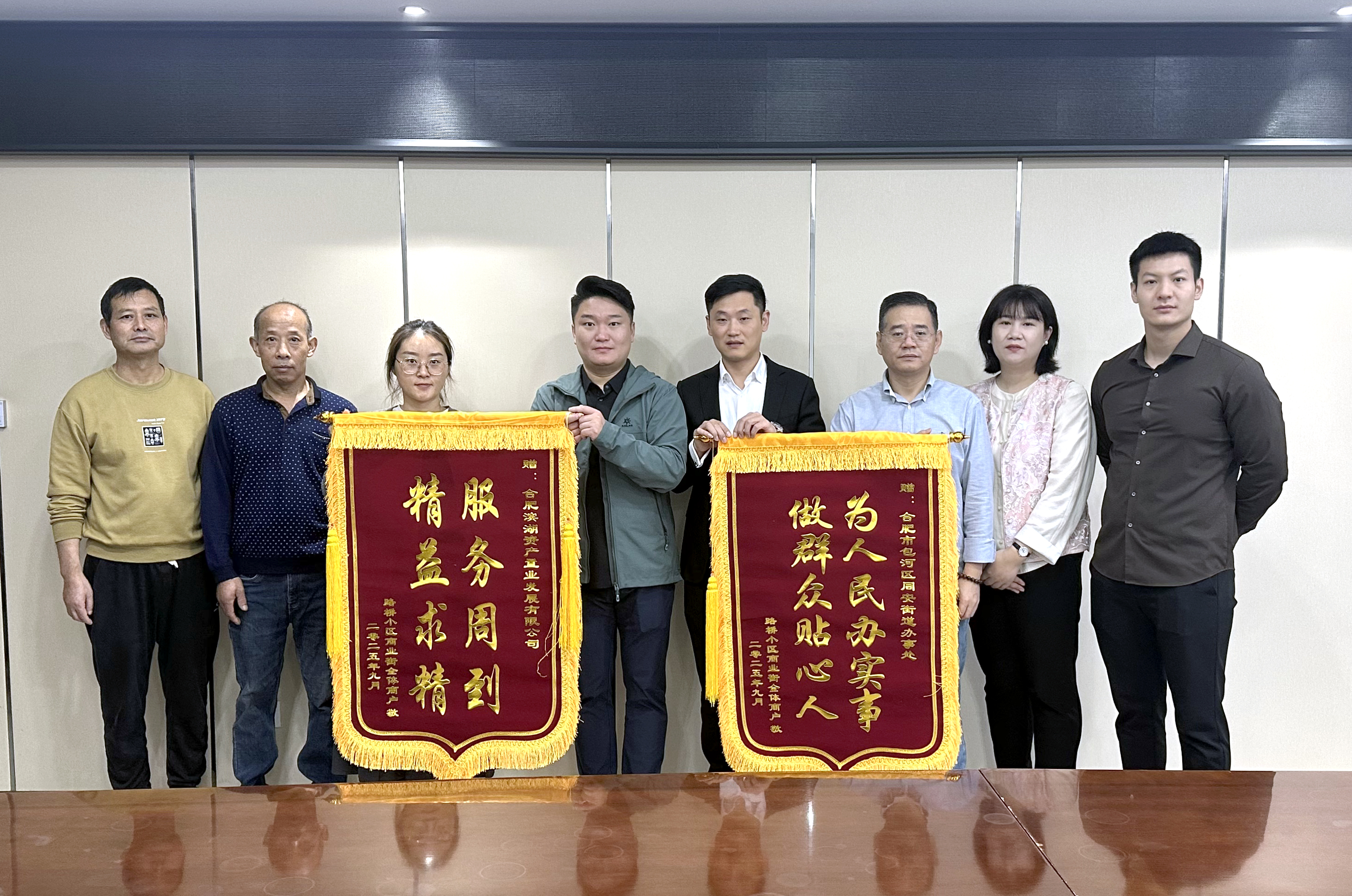 10月15日上午,随着合肥市包河区同安街道路桥小区商业资产危房改造项目顺利完工,小区经营商户代表向同安街道办事处和置业公司赠送锦旗,感谢项目期间政企双方真诚服务、务实推进,及时消 ...
