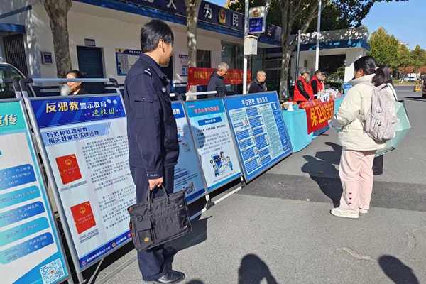 近日,合肥市公安局经开分局锦绣派出所联合辖区高校开展了一场主题鲜明、内容丰富的反邪教宣传活动。活动现场,民警身着制服,与学校工作人员一道,向师生发放反诈、禁毒及反邪教等法治宣 ...