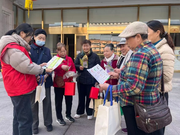 临近年关,针对诈骗案件频发的实际,荆山街道海南渡社区瞄准口袋公园、小广场、菜市场等居民集中区开展反诈宣传,守护好居民的“钱袋子。”