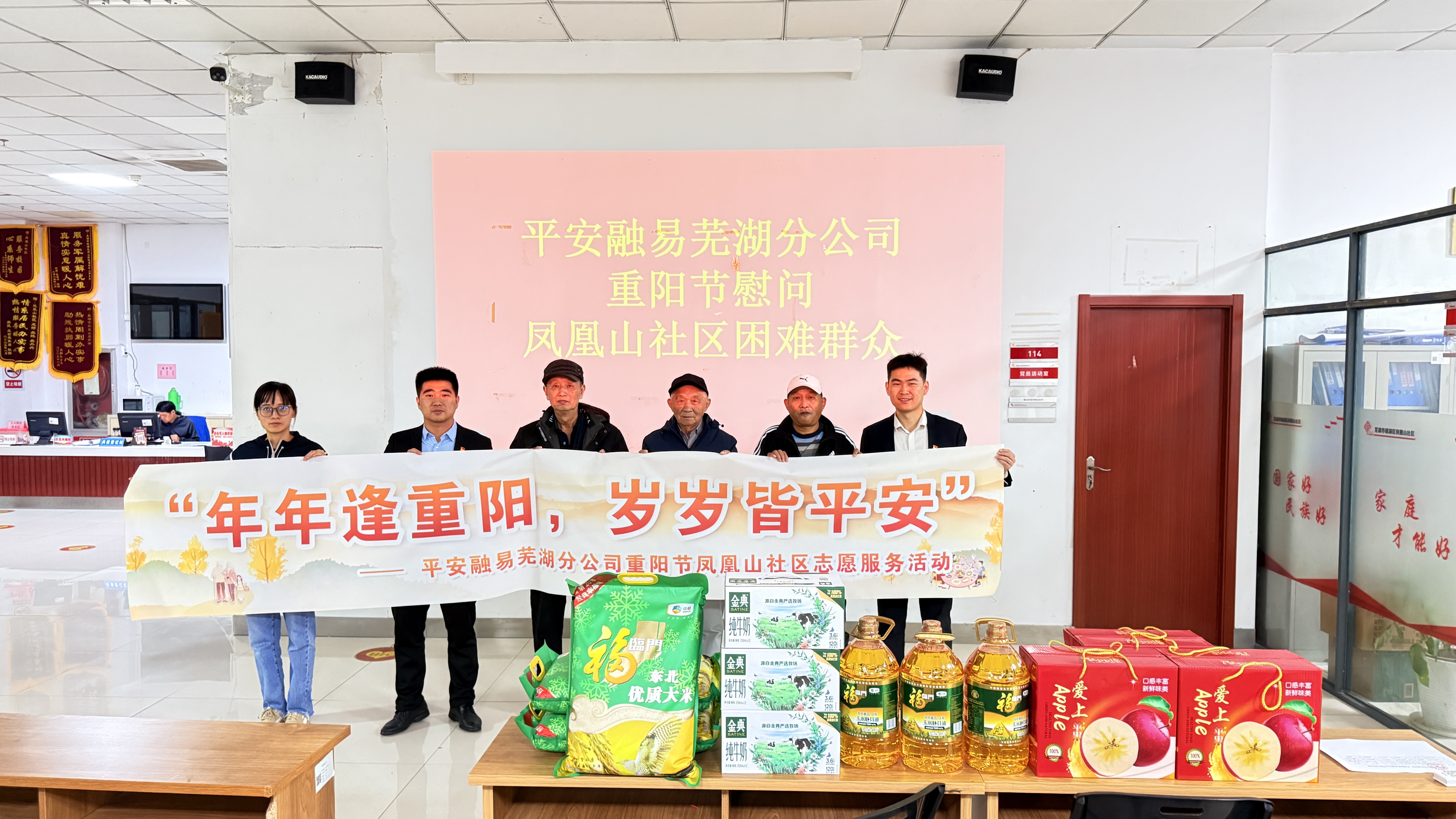 “年年逢重阳,岁岁皆平安”。为充分发挥“红色合伙人”工作机制,把关怀精准送到需要的群众身边,10月29日上午,凤凰山社区党委联合辖区非公企业“红色合伙人”——平安融易芜湖分公司, ...