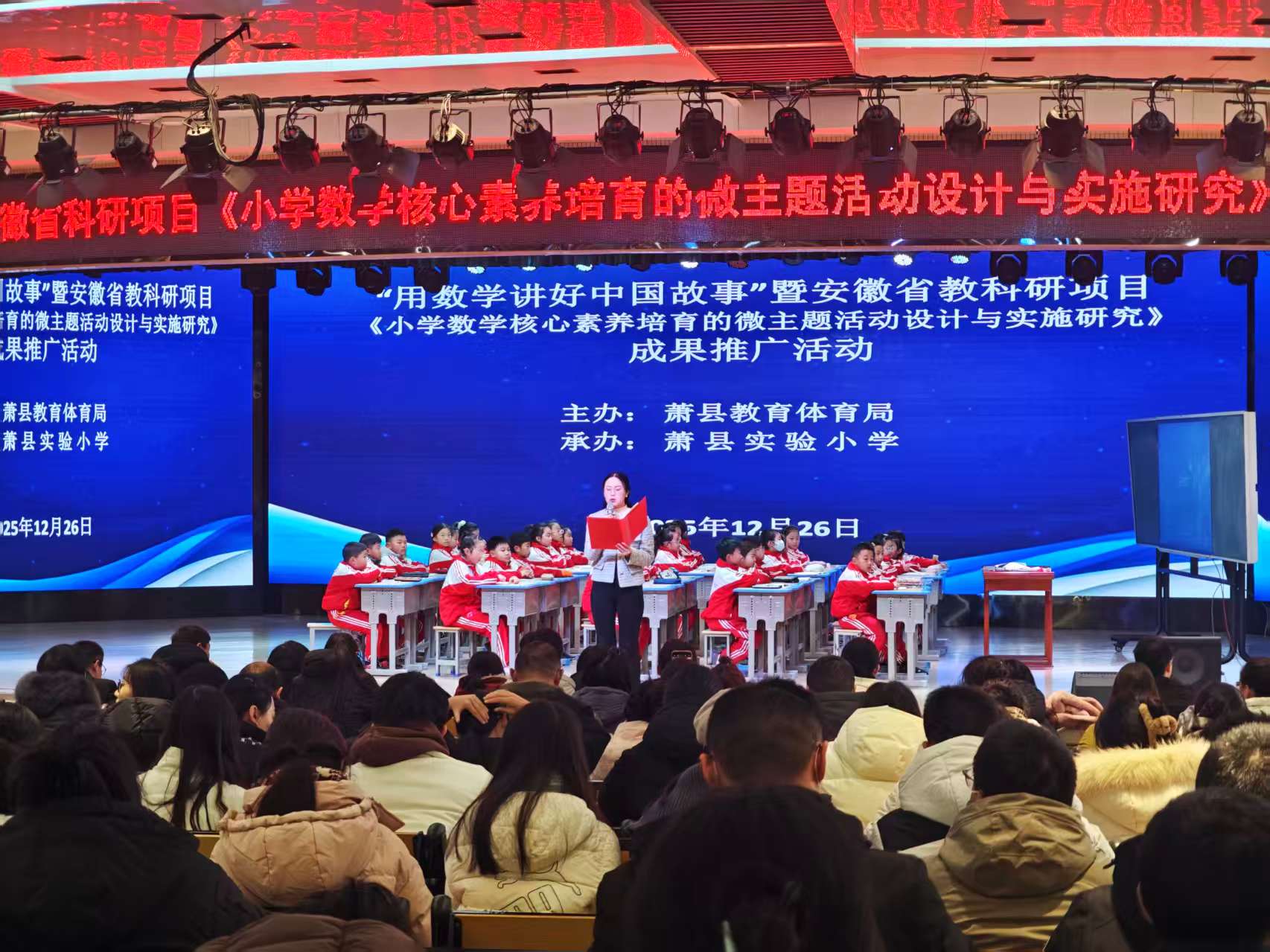 12月26日,“用数学讲好中国故事”暨安徽省教科研项目《小学数学核心素养培育的微主题活动设计与实施研究》成果推广活动在萧县实验小学报告厅举行。来自各乡镇中心校、县直小学的教研负责 ...